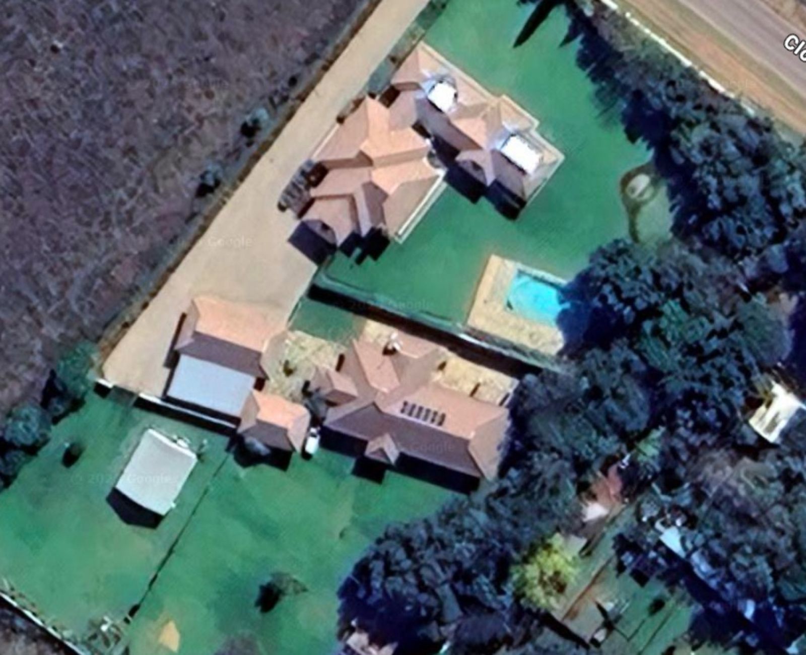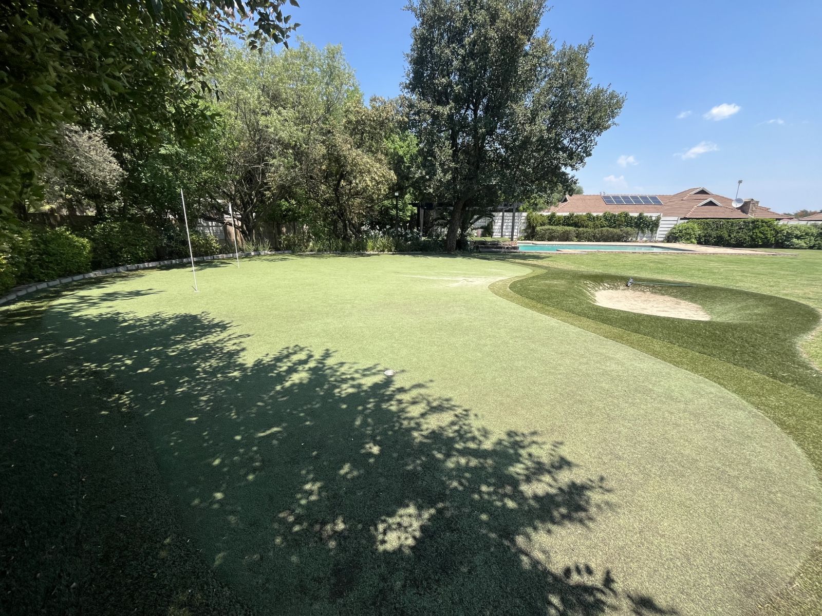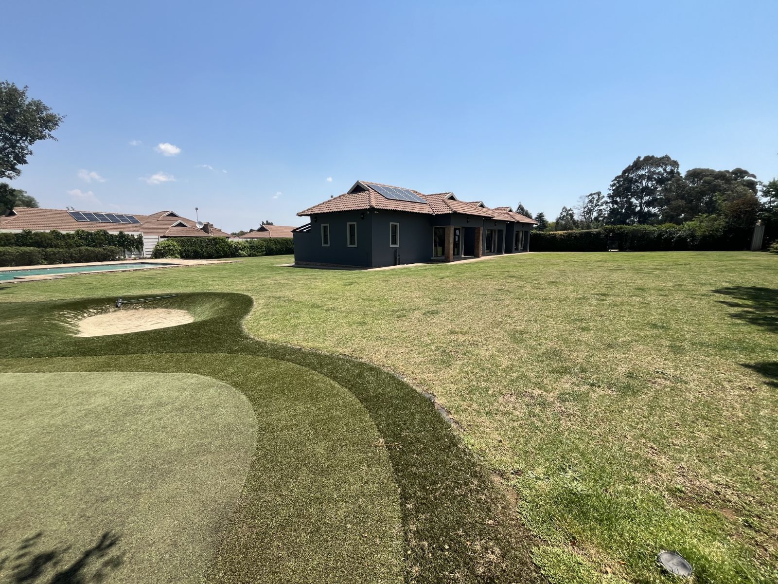 The larger home also boasts 4 garages, a large pool and a delightful putting green. Also on offer is a log cabin for your staff which comprises 2 bedrooms, bathroom, lounge and kitchen.
