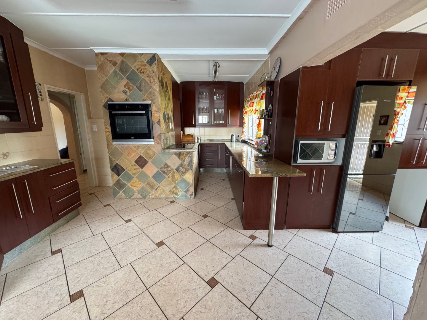 This lovely family home features a well-equipped kitchen with a scullery and a convenient laundry area.