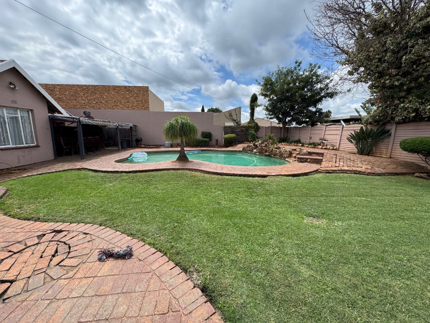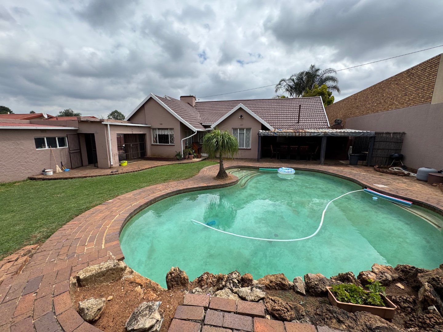 The property also includes a study, perfect for a home office. For additional living space, there are staff quarters. The home provides parking with a double garage and two carports. Enjoy the outdoors with a beautiful pool, perfect for cooling off and entertaining. This home combines practicality with modern comforts for an ideal family lifestyle.
