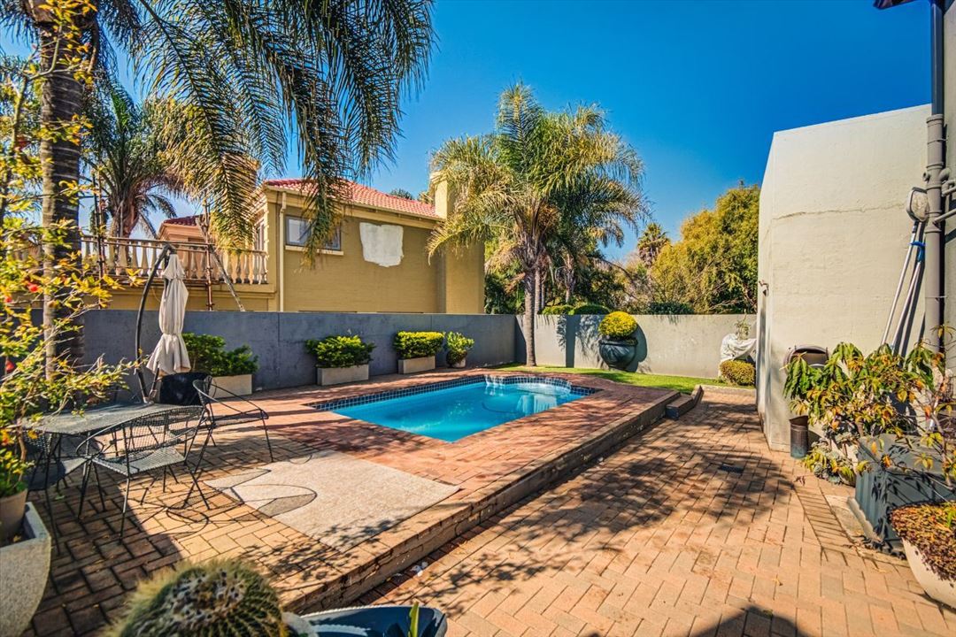The well-equipped kitchen is complemented by a pantry and a separate scullery. Two guest loos provide added convenience, while four built-in cupboards offer ample storage. The property also boasts two garages and a sparkling pool—perfect for summer entertaining.