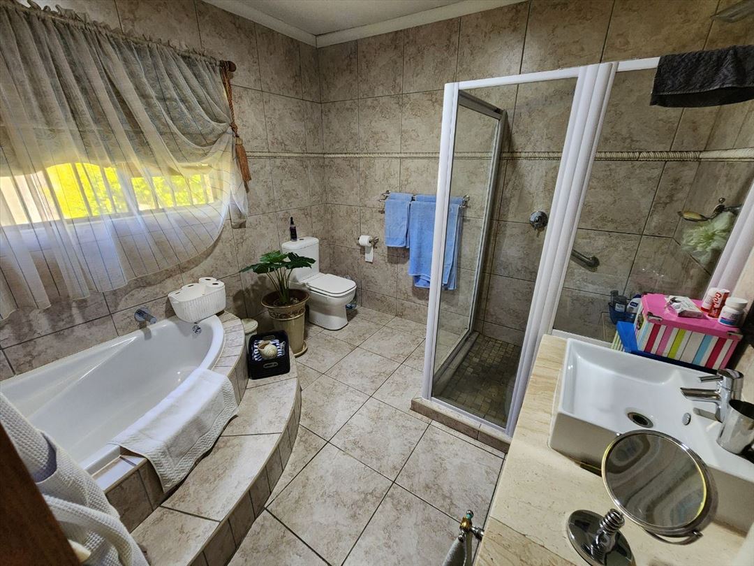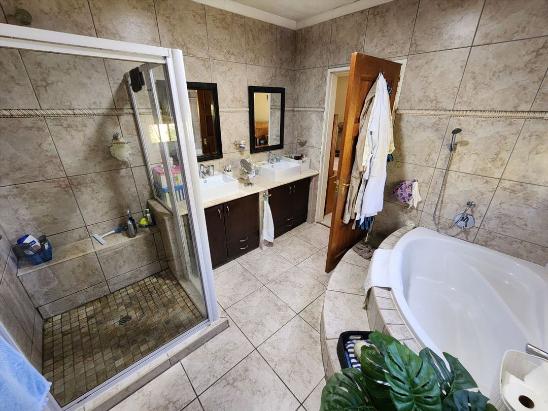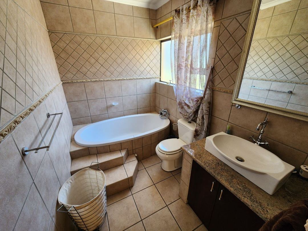 Step into elegance with this spacious double storey home offering 5 bedrooms, all with built-in cupboards, and 3 bathrooms including 2 luxurious en-suite master suites. Perfect for entertaining and family living, it features 2 lounges, 2 family rooms, a dining room, study, guest toilet, and a fully equipped kitchen with stove, scullery, and pantry.