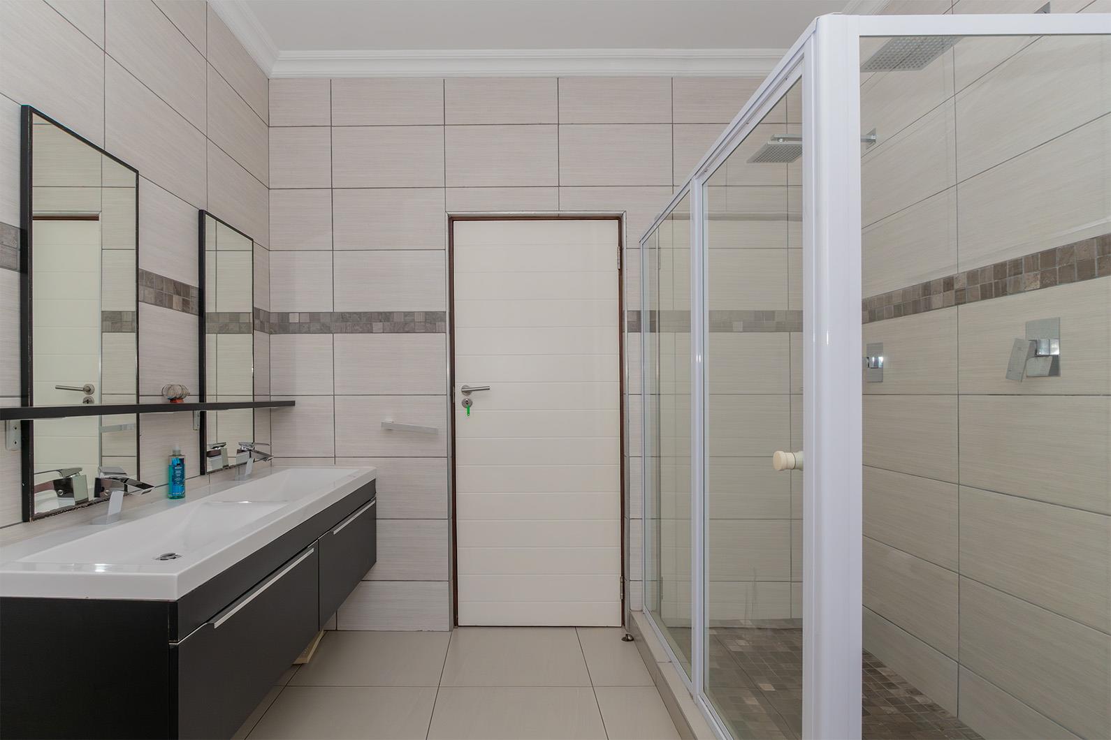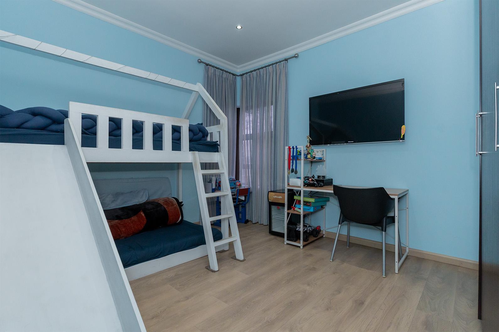 This elegant residence offers spacious open-plan living designed for modern family living and effortless entertaining. The lounge flows seamlessly into the dining area and the enclosed entertainment room, featuring stacking doors and a built-in braai — perfect for hosting family and friends all year round.