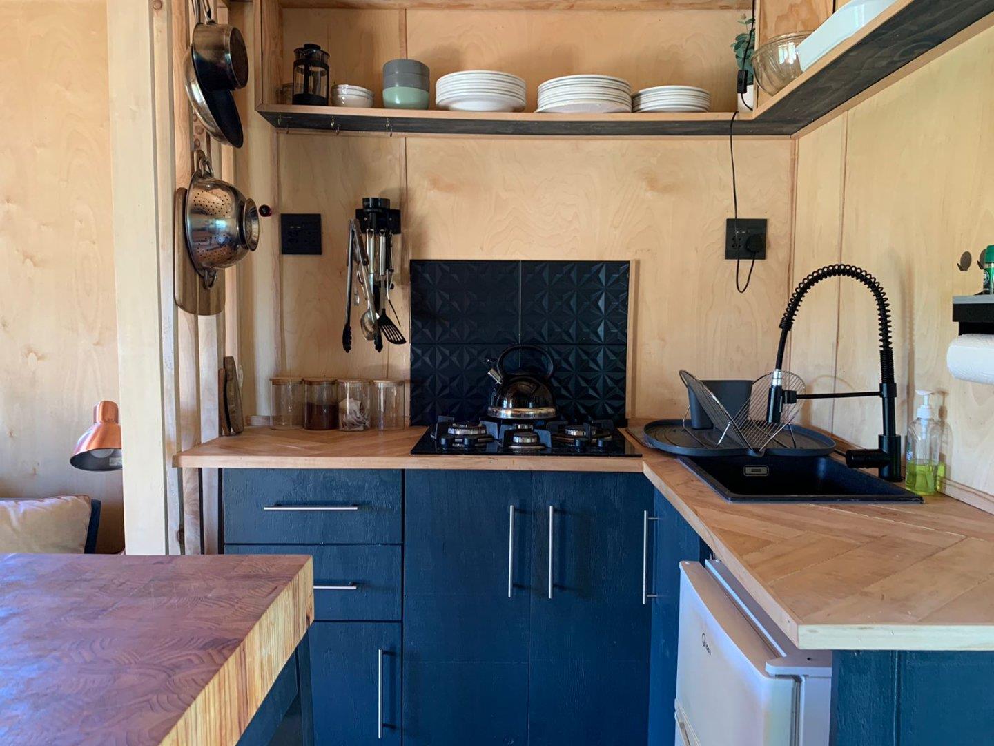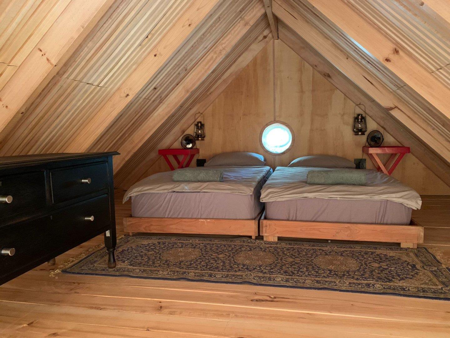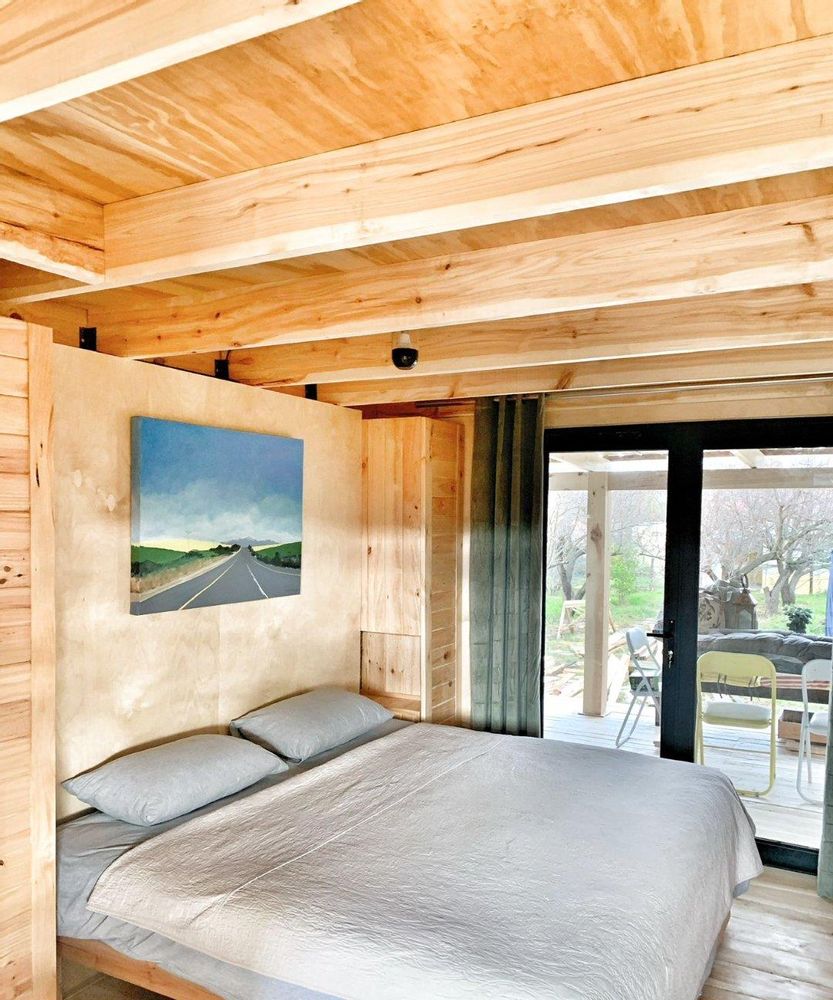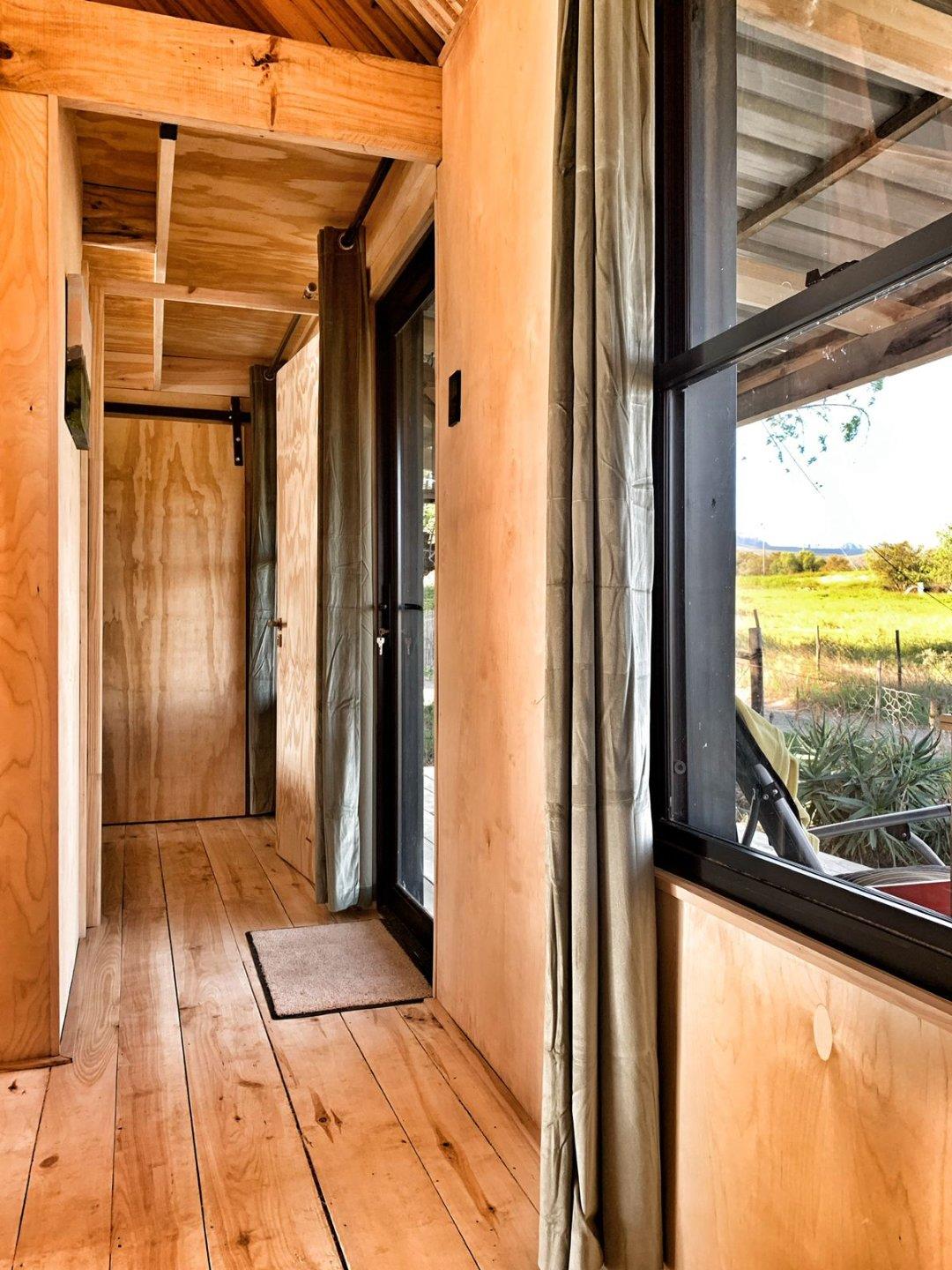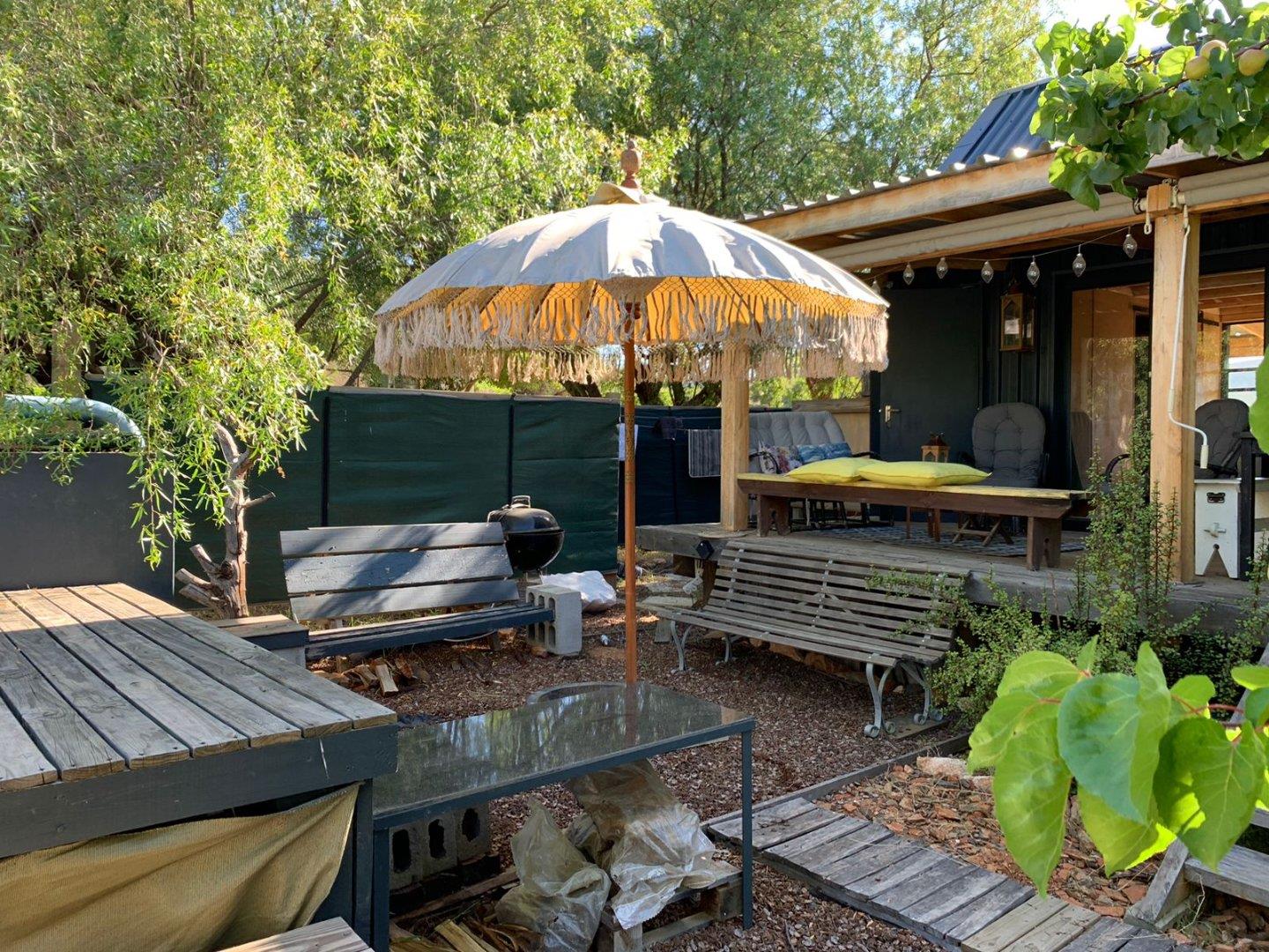 This stunning cottage is a prime example of the popular Tiny Home movement, showcasing exceptional architectural design. Nestled in the quaint hamlet of Van Wyksdorp, The Woodcutters Cottage offers a one-of-a-kind, off-the-grid living experience. Created by the renowned Westhaus architects, this masterpiece could be yours. Situated on a corner plot in the most peaceful area of the town, this charming 2-bedroom cottage was hand-built using Karoo poplar wood and sits gracefully on stilts, blending harmoniously with the natural surroundings. The attention to detail in this home is apparent in every aspect, from the birch wood ply interior walls to the vaulted ceilings and rustic polar wood floors, which bring a touch of Scandinavian minimalism to the Klein Karoo. The cottage is completely self-sufficient, with its own electricity and water sources. The main bedroom features an en-suite bathroom, while the second loft bedroom has an outdoor toilet and shower. The open-plan lounge and kitchen boast a cozy wood-burning fireplace, perfect for chilly winter days. With triple insulation, this home stays cool in the hot summers and warm in the winter. The sale also includes two 535 m2 stands and approved plans for a second identical cottage, offering a unique opportunity for a potential buyer. The property also includes a solid concrete dam, storing enough water for 10 minutes per stand, ensuring the plentiful apricot trees bear delicious fruit every year. The water is also used to fill the pool and for household purposes. Don`t miss out on the chance to own a fully self-sufficient country retreat or permanent residence in a town where life follows the pace of the seasons.