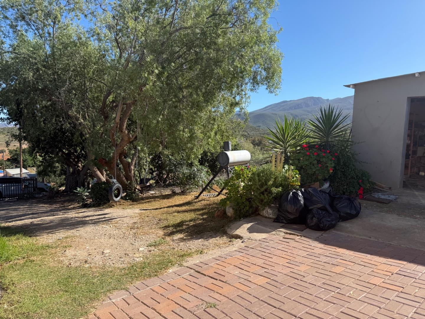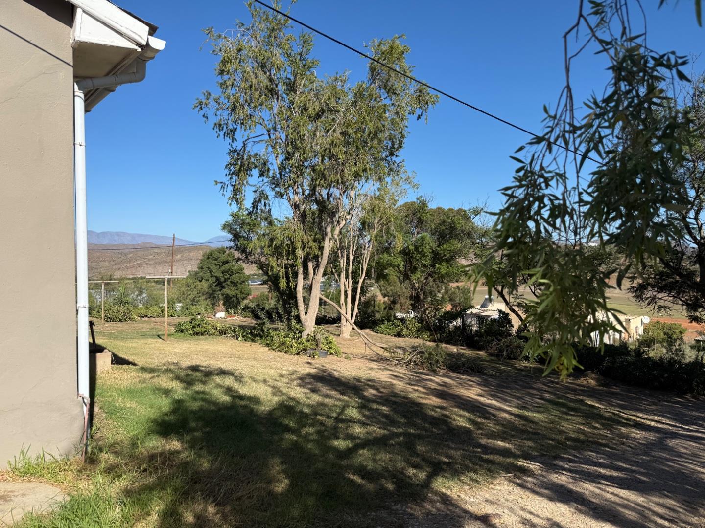 Set on a large double plot, the property boasts a substantial yard, providing ample outdoor space for relaxation and entertainment. The home features a separate garage with two additional rooms attached, which can be used as storage or converted into additional living spaces. An electric gate enhances security and convenience, while its elevated position offers breathtaking 360-degree views of the surrounding Karoo landscape.