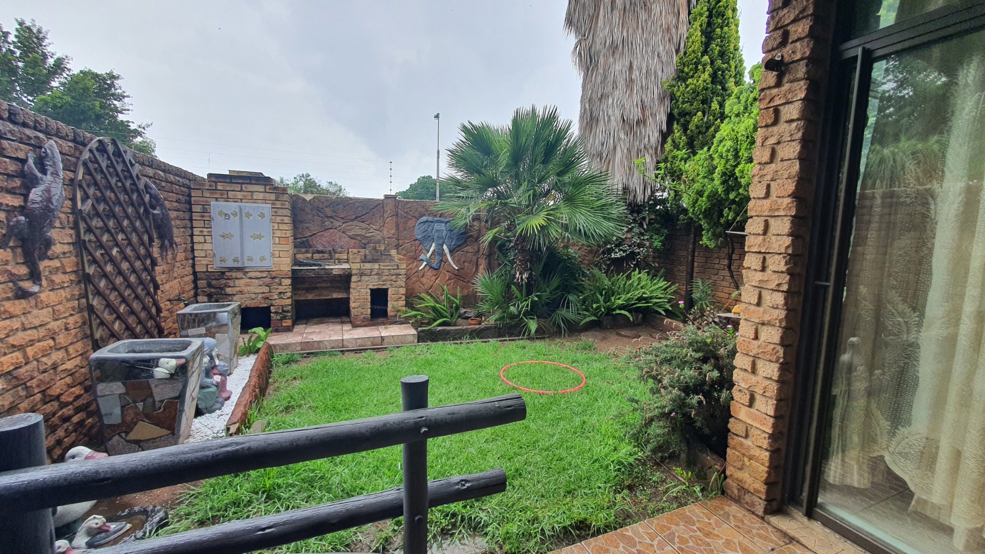 Private yard with double garage for sale
