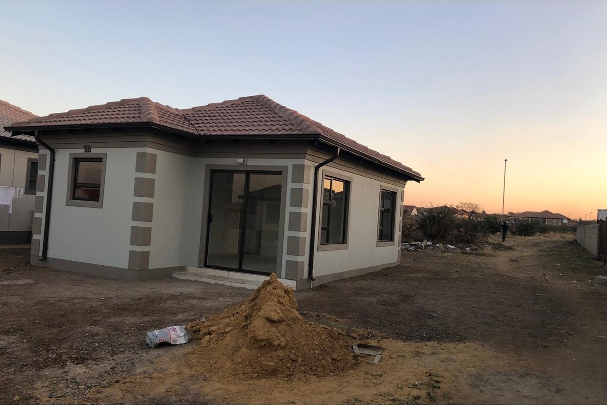 This brand-new 2-bedroom, 1-bathroom house is nestled in a peaceful suburb of Vanderbijlpark, offering the perfect blend of comfort and convenience.