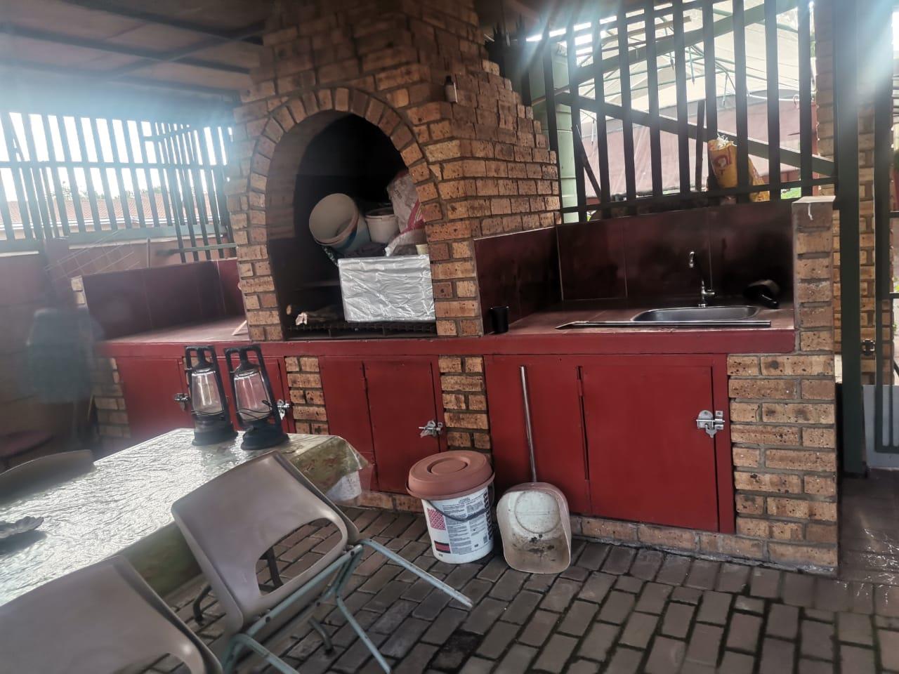 Outside, the property is designed for enjoyment and convenience. The entertainment area includes a braai space, ideal for hosting gatherings with family and friends. A carport accommodates up to three vehicles, ensuring ample parking space for residents and guests.
