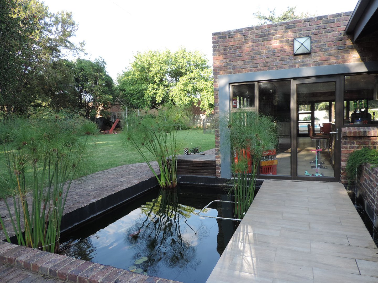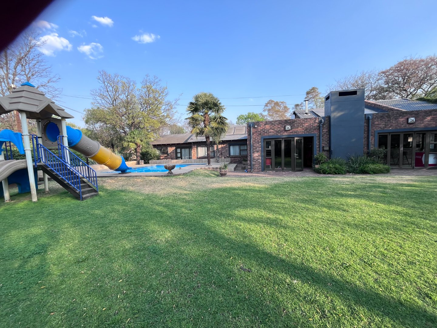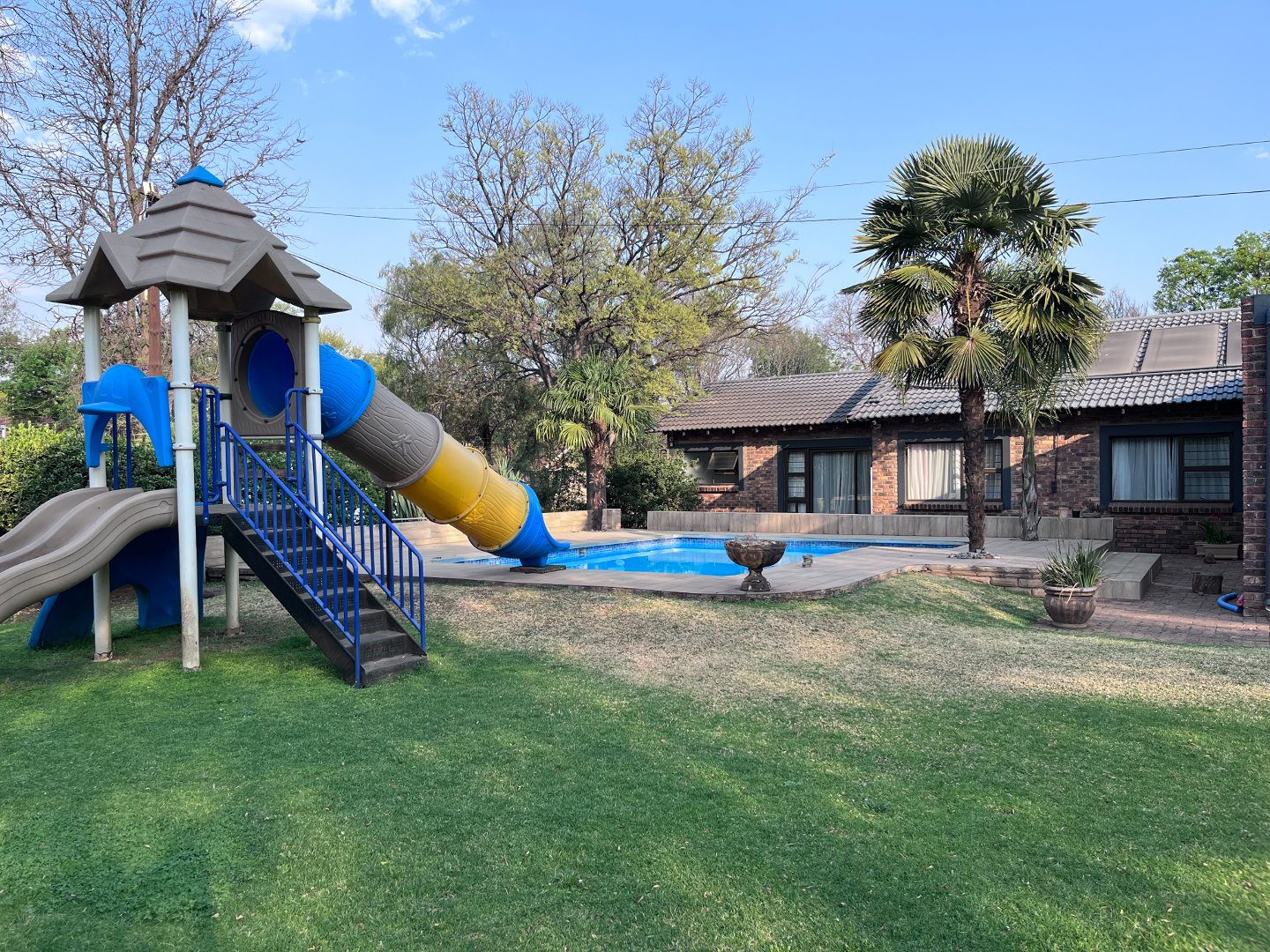 A residence of distinction, cocooned by mature trees and landscaped gardens, offering privacy and elegance. Designed for refined living and effortless entertaining, this home boasts a formal lounge, dining room with fireplace, study, TV lounge, and an exclusive entertainment room with built-in bar and a stylish braai area, sparkling pool, and immaculate garden.