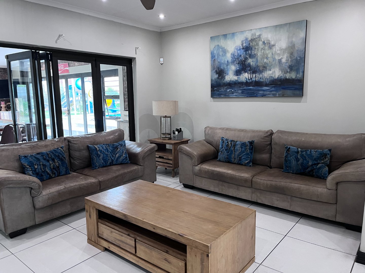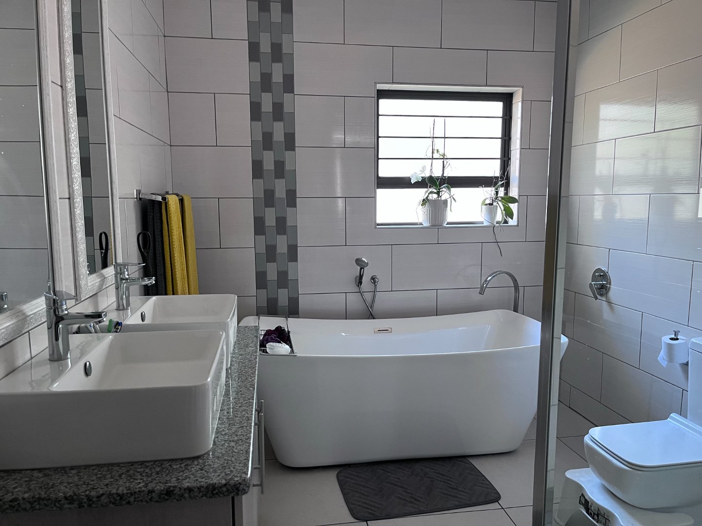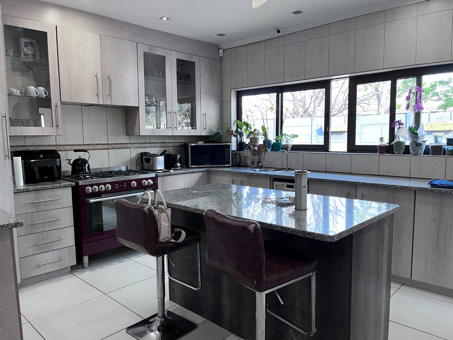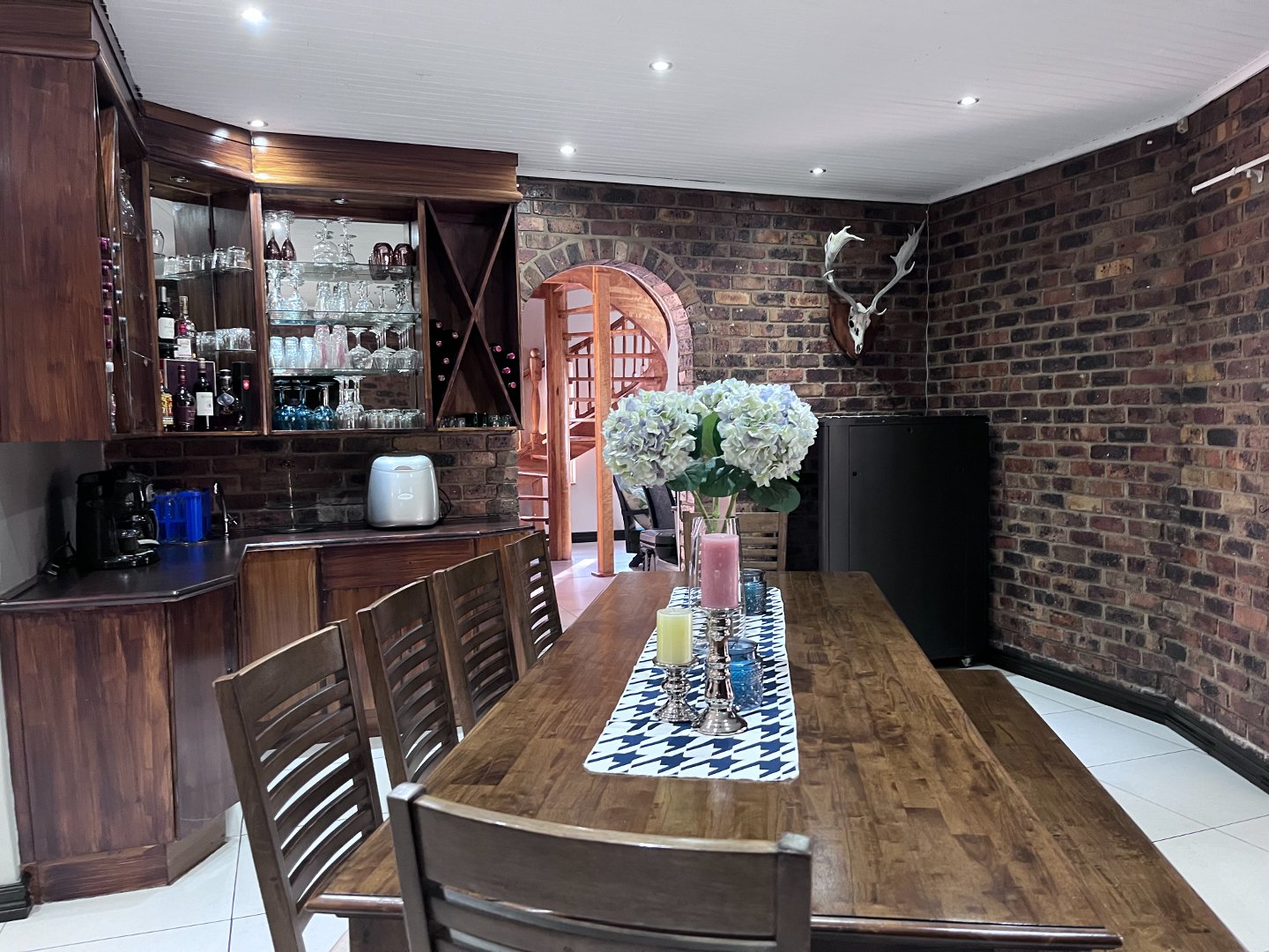 A residence of distinction, cocooned by mature trees and landscaped gardens, offering privacy and elegance. Designed for refined living and effortless entertaining, this home boasts a formal lounge, dining room with fireplace, study, TV lounge, and an exclusive entertainment room with built-in bar and a stylish braai area, sparkling pool, and immaculate garden.