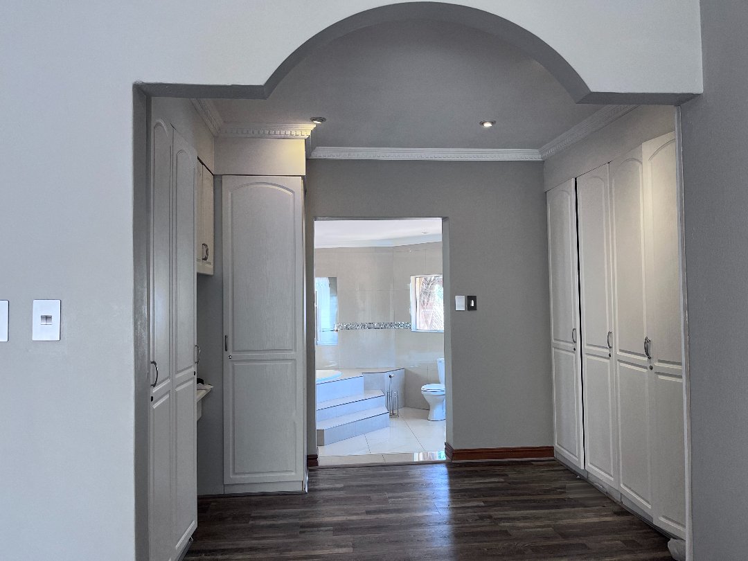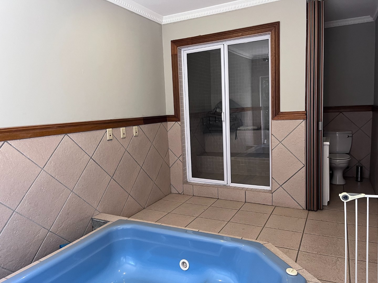 The downstairs area flows seamlessly from formal to casual spaces, featuring a gracious lounge, elegant dining room, private study, TV lounge with jacuzzi and sauna, and a bespoke entertainment room complete with a built-in bar and an en-suite guest bedroom. Expansive sliding doors open onto the braai area and pool - the ultimate setting for gatherings with family and friends.