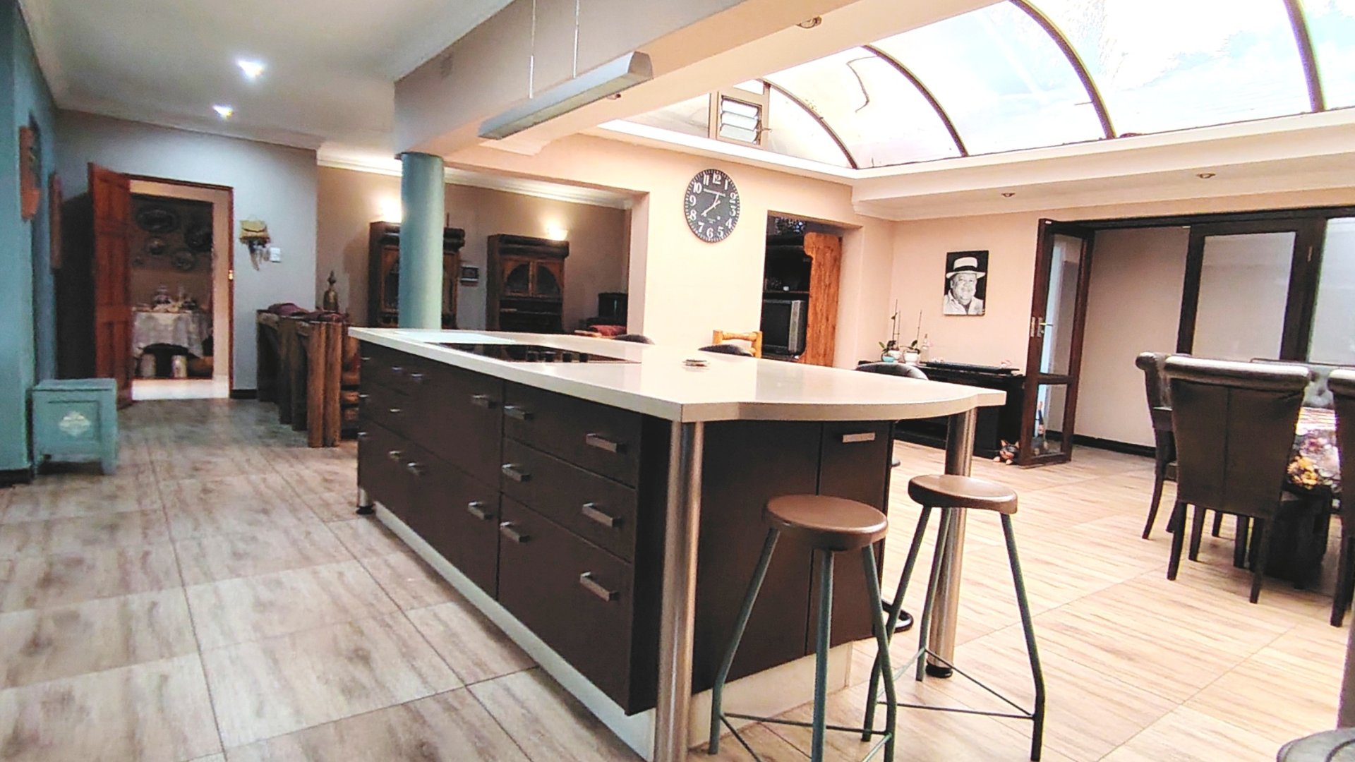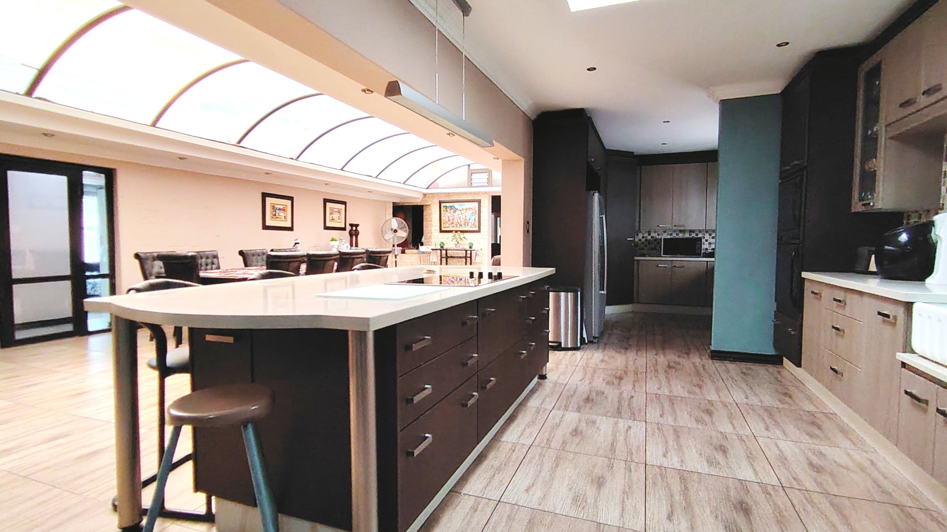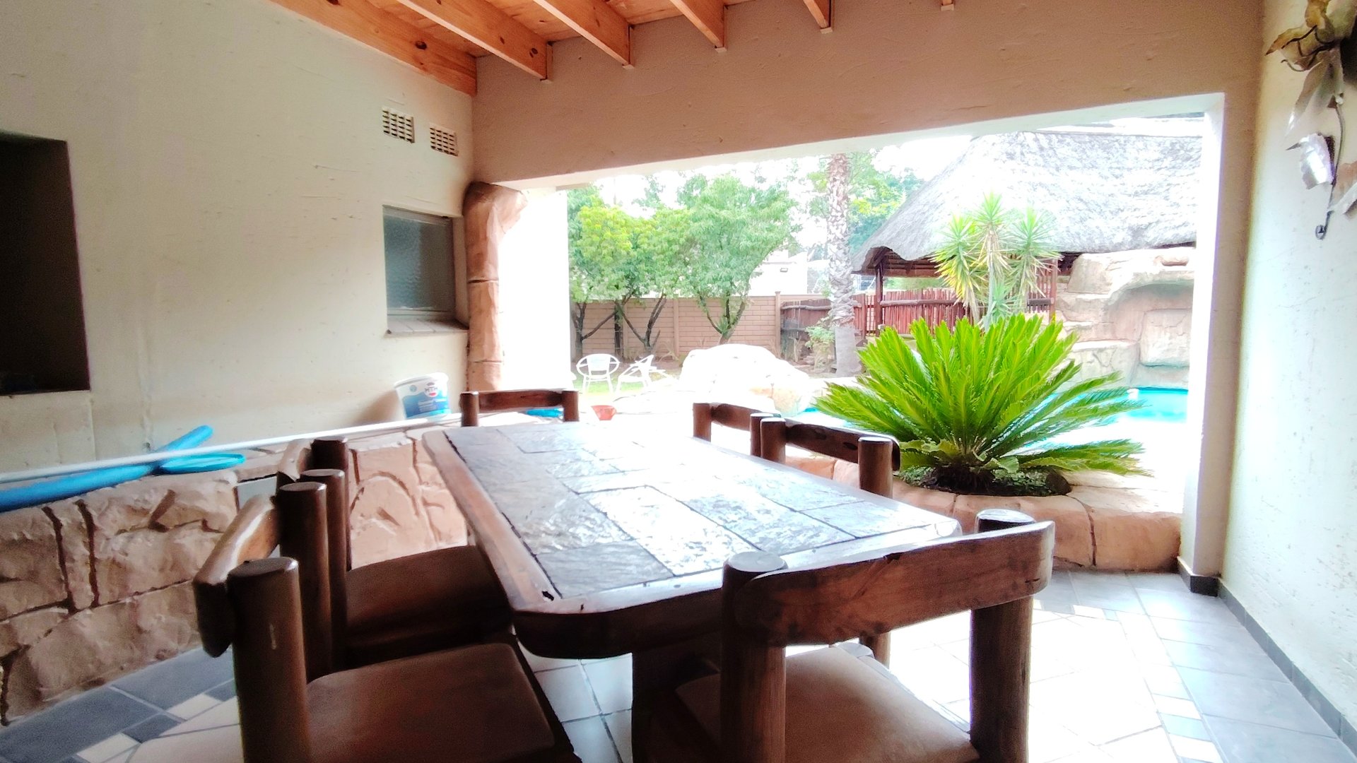 Entertainment is taken to the next level with a built-in bar and indoor braai, seamlessly flowing into a very large lapa, ideal for hosting memorable occasions all year round.
