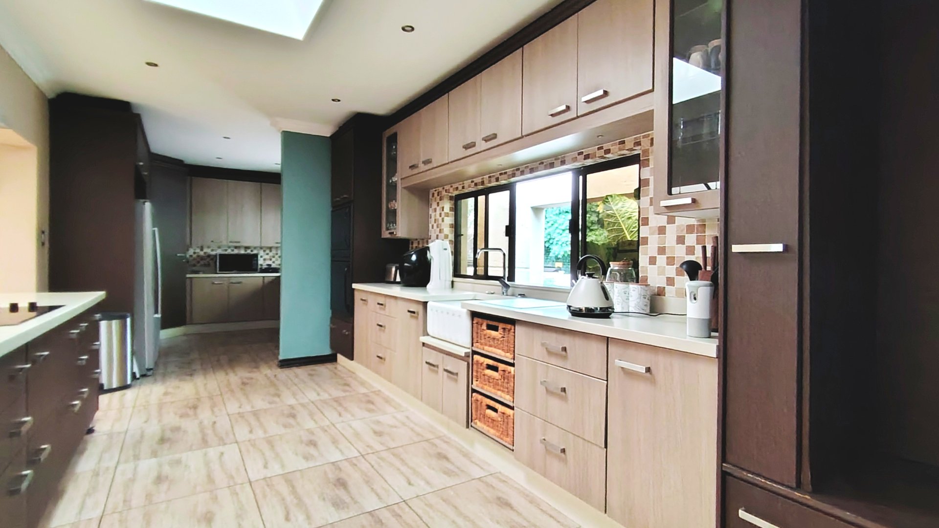 Living spaces are abundant and include a spacious formal lounge, a separate TV room, and a large dining room, all designed for effortless family living and entertaining. The home features three kitchens, one of which is exceptionally large and fitted with a charming breakfast nook, making it the heart of the home for family gatherings.