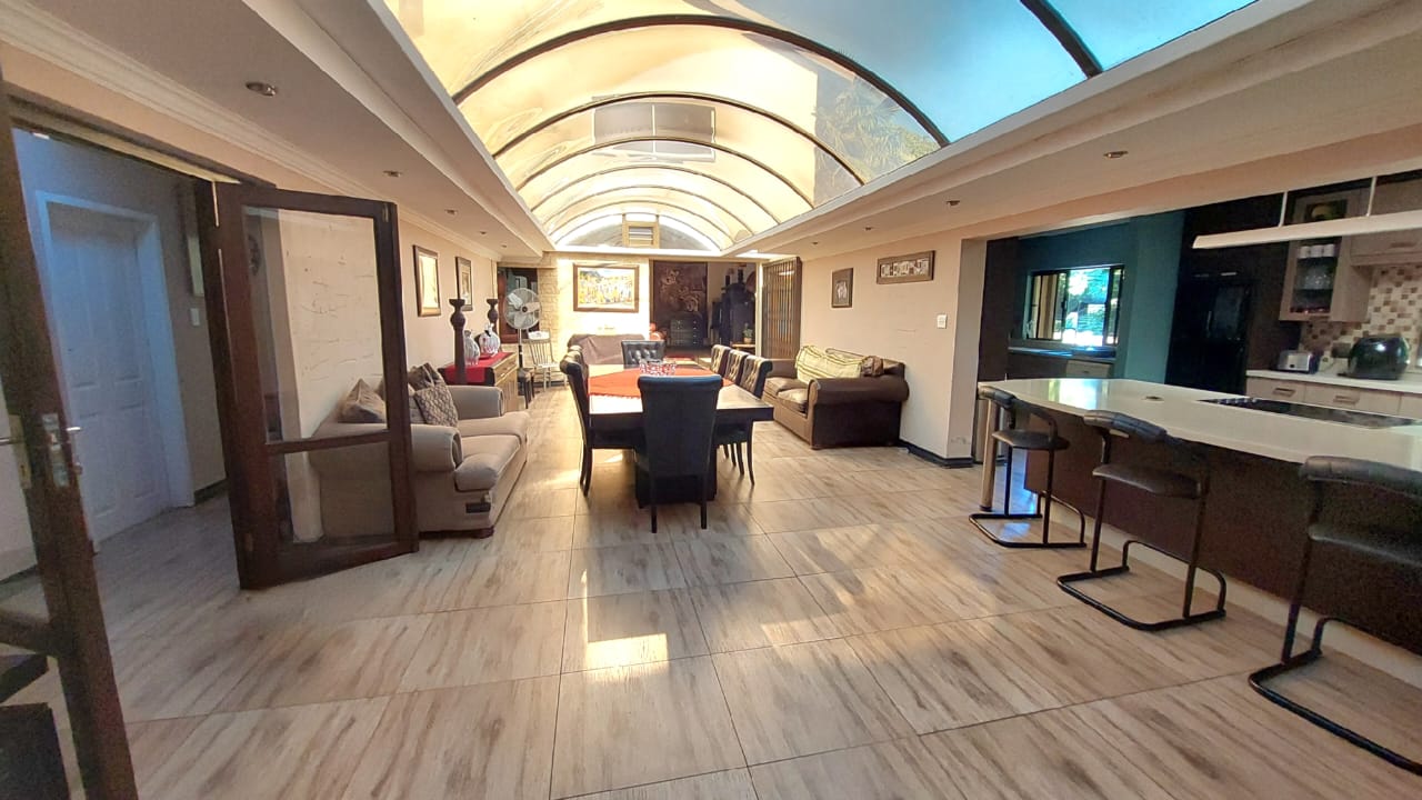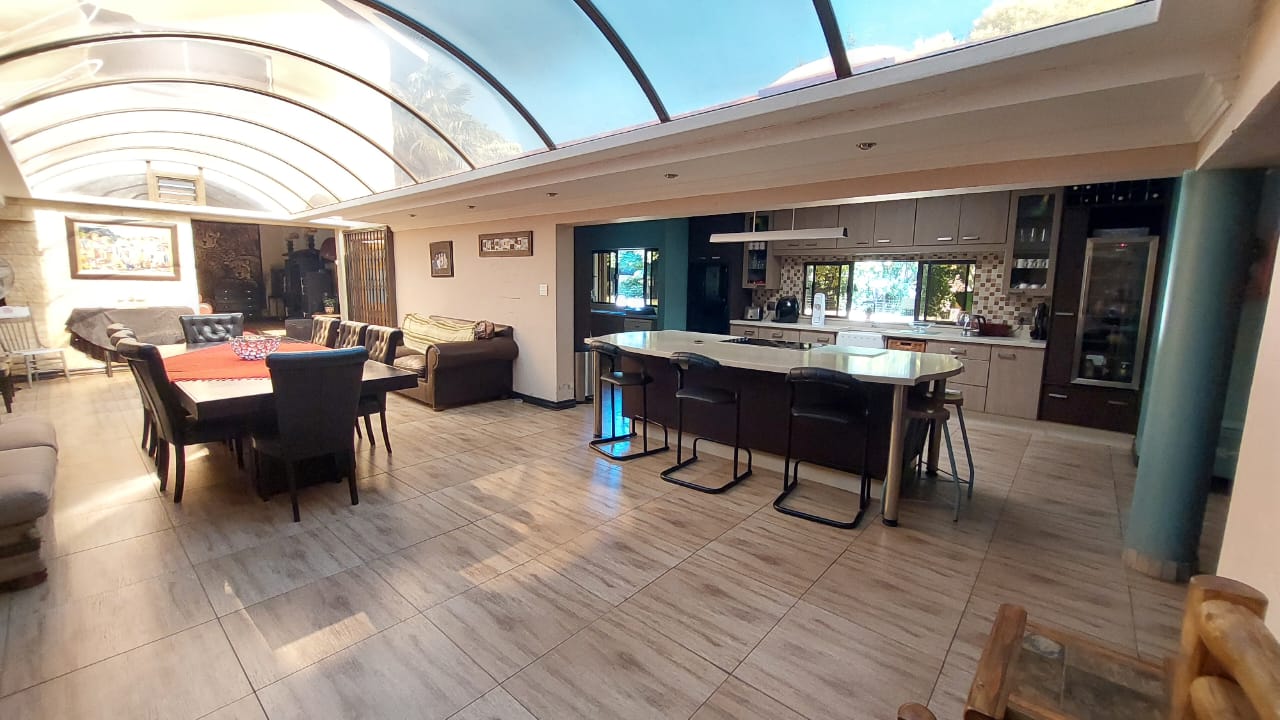Beautiful open plan kitchen, lounge and dining area with a skylight