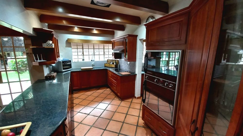 Spacious and elegant. Consisting of 3 bedrooms, 2 bathrooms of which one is an en-suit, study, 2 lounge areas, tv room, dining area, scullery, kitchen with cherry wood cupboards.