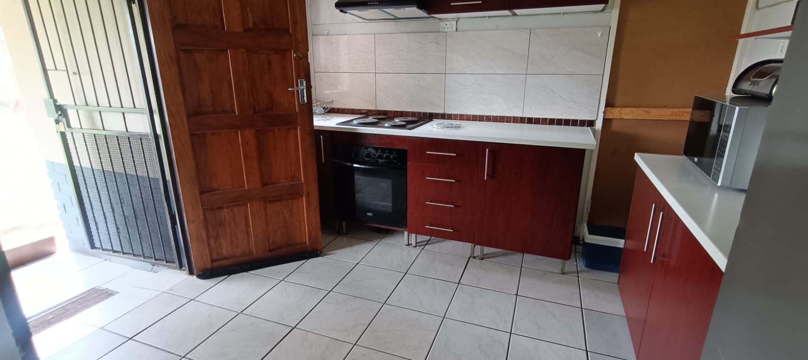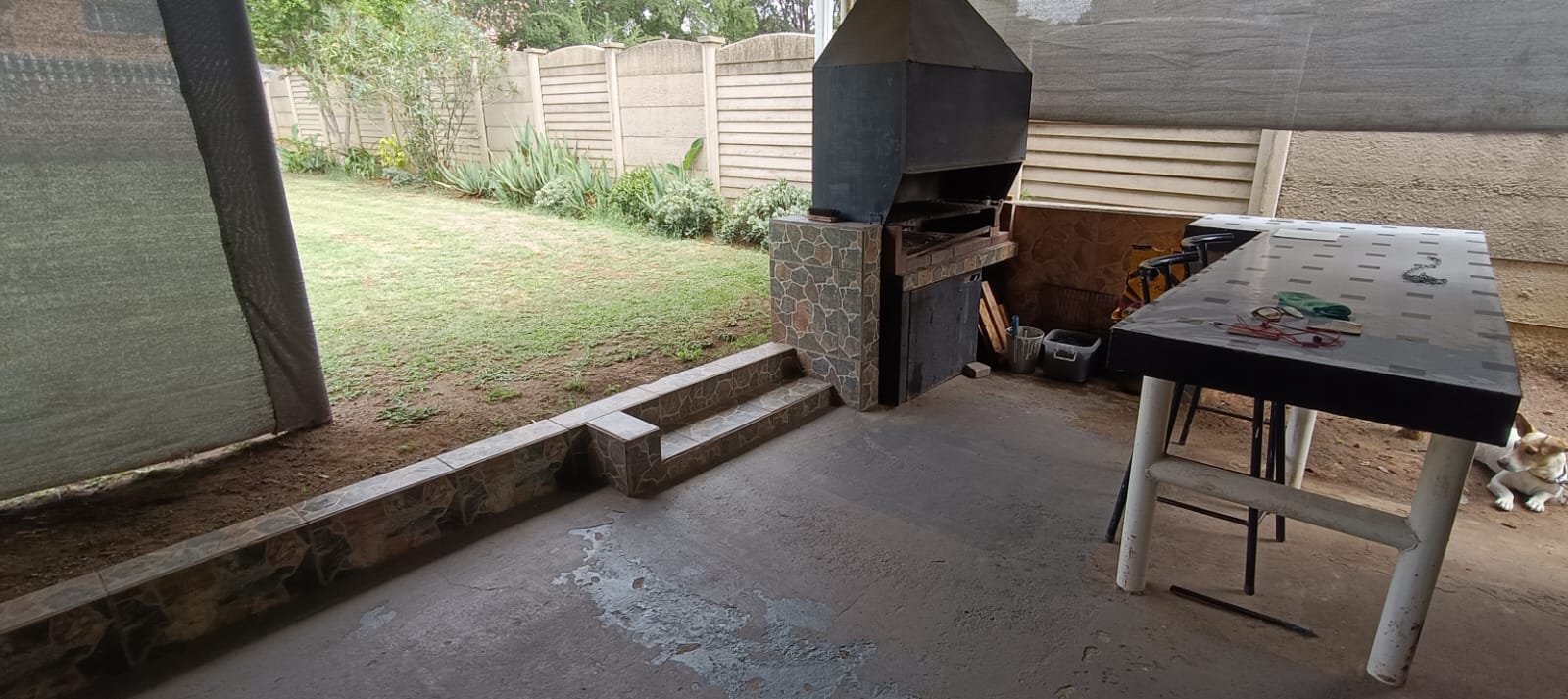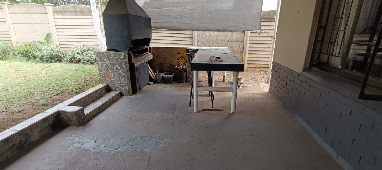 Entertainer’s Dream: A covered patio with a dedicated sitting area and a built-in braai, perfect for weekend gatherings.