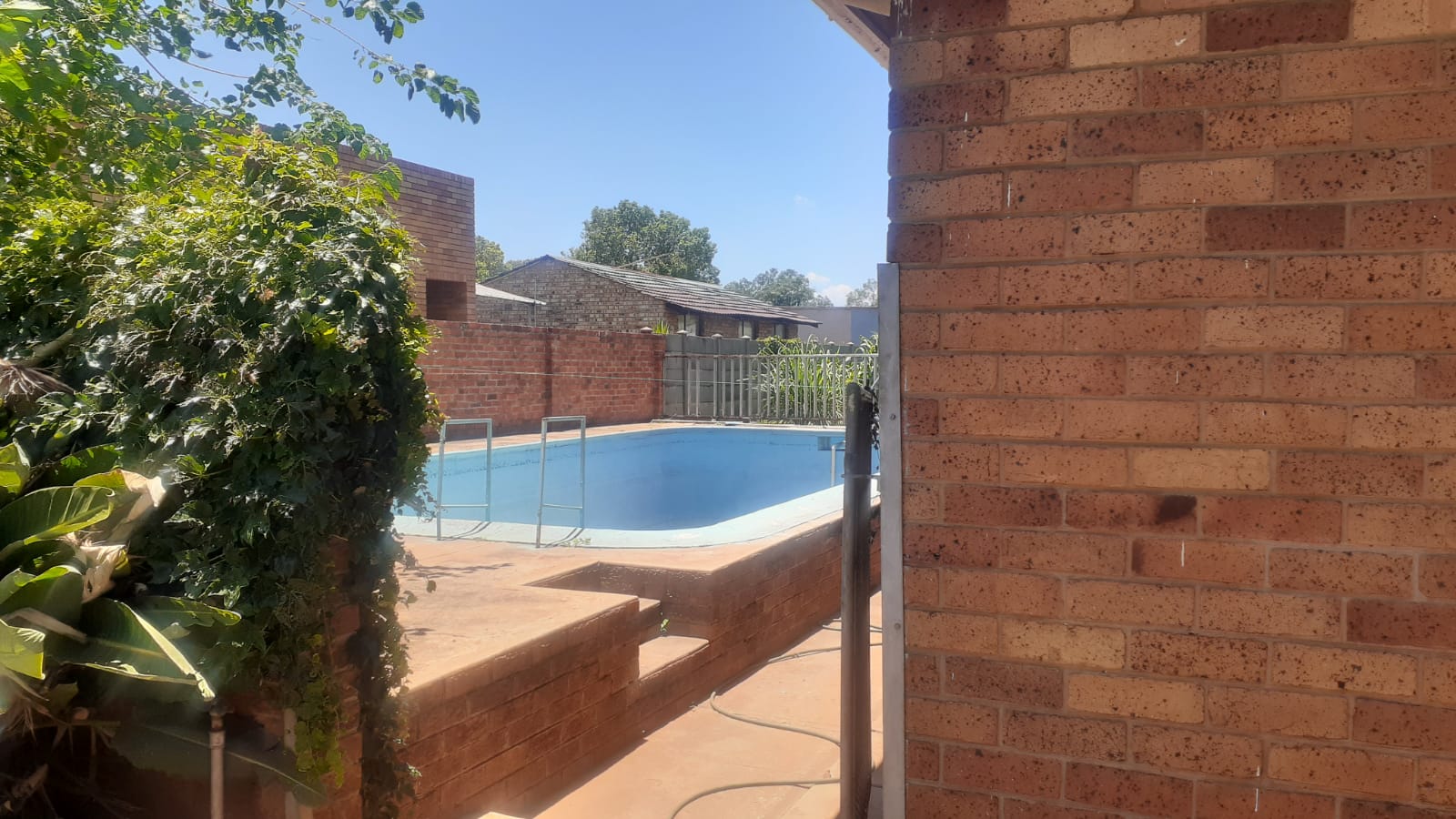 It comes with a lounge and a sun room, four bedrooms, the main with an ensuite, dining, and a kitchen with a launderette on an extended veranda. Has a big yard with a garden together with a borehole and swimming pool. A single lock up garage and a back room with own toilet.