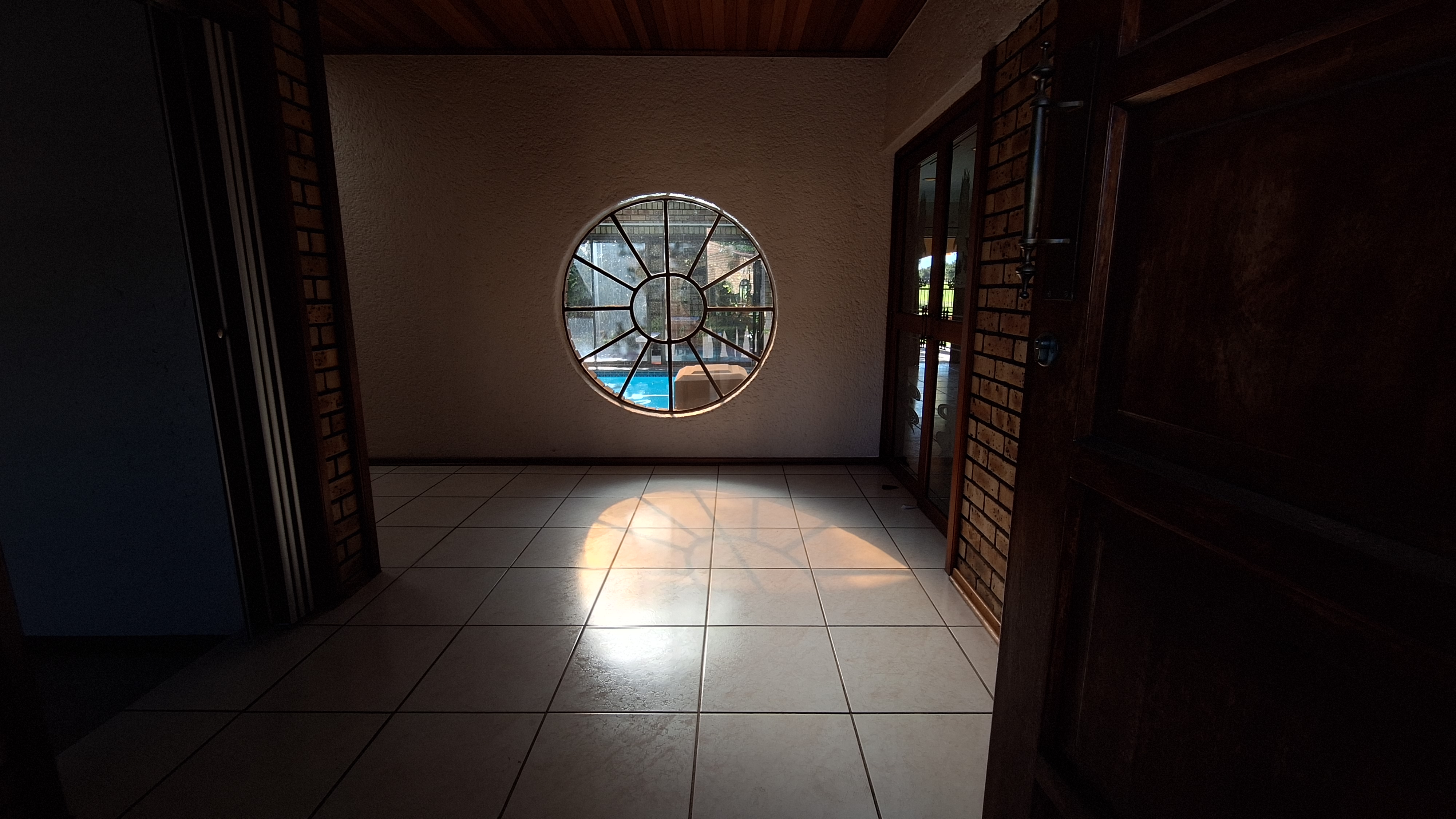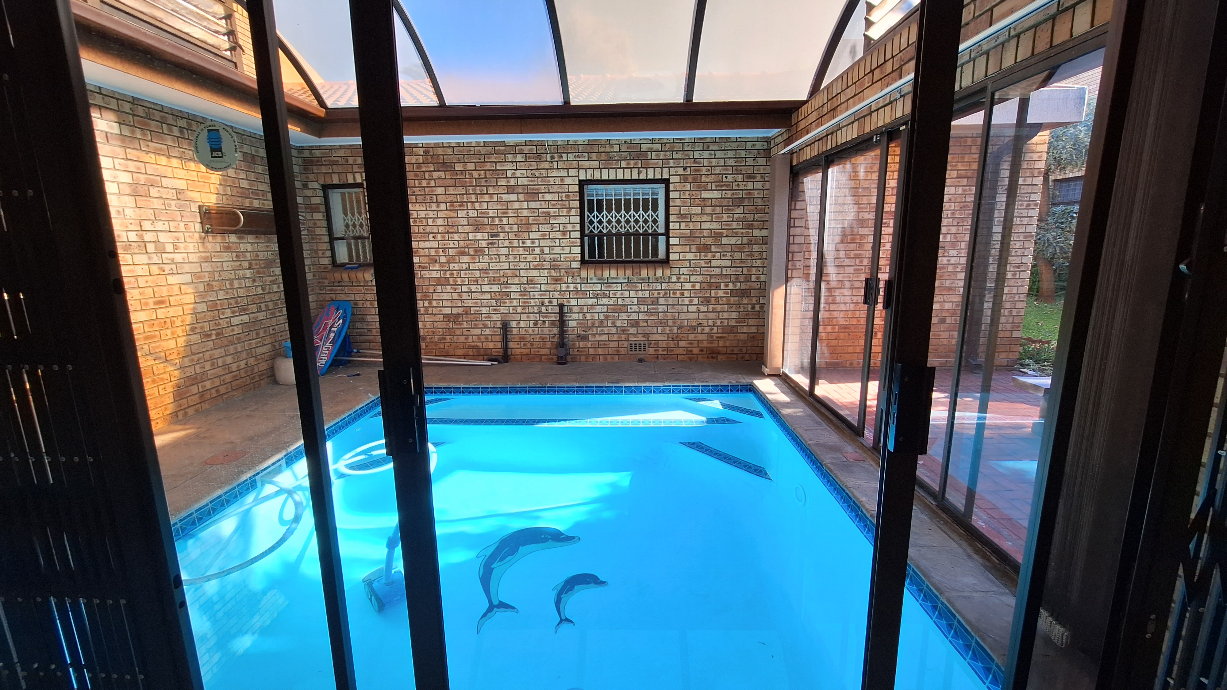 Glass doors from the living area open to a heated pool