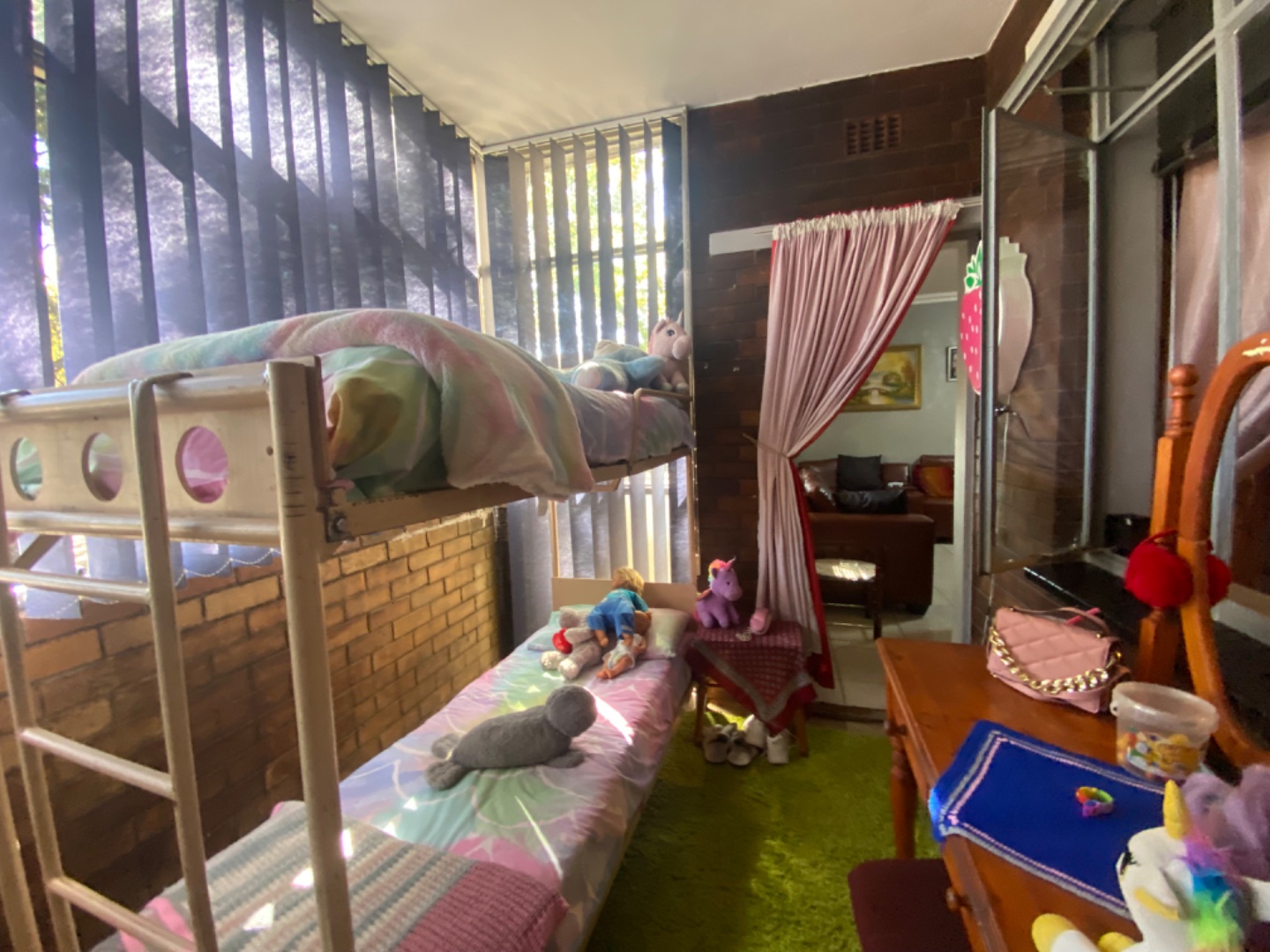 A Lovely 2 Bedroom Apartment on the ground floor, in the heart of Vanderbijlpark . The Apartment offers open plan dining and Living area and a neat kitchen with (BIC) with gas stove . The main bedroom has enclosed balcony , which can be used as study or small third bedroom .