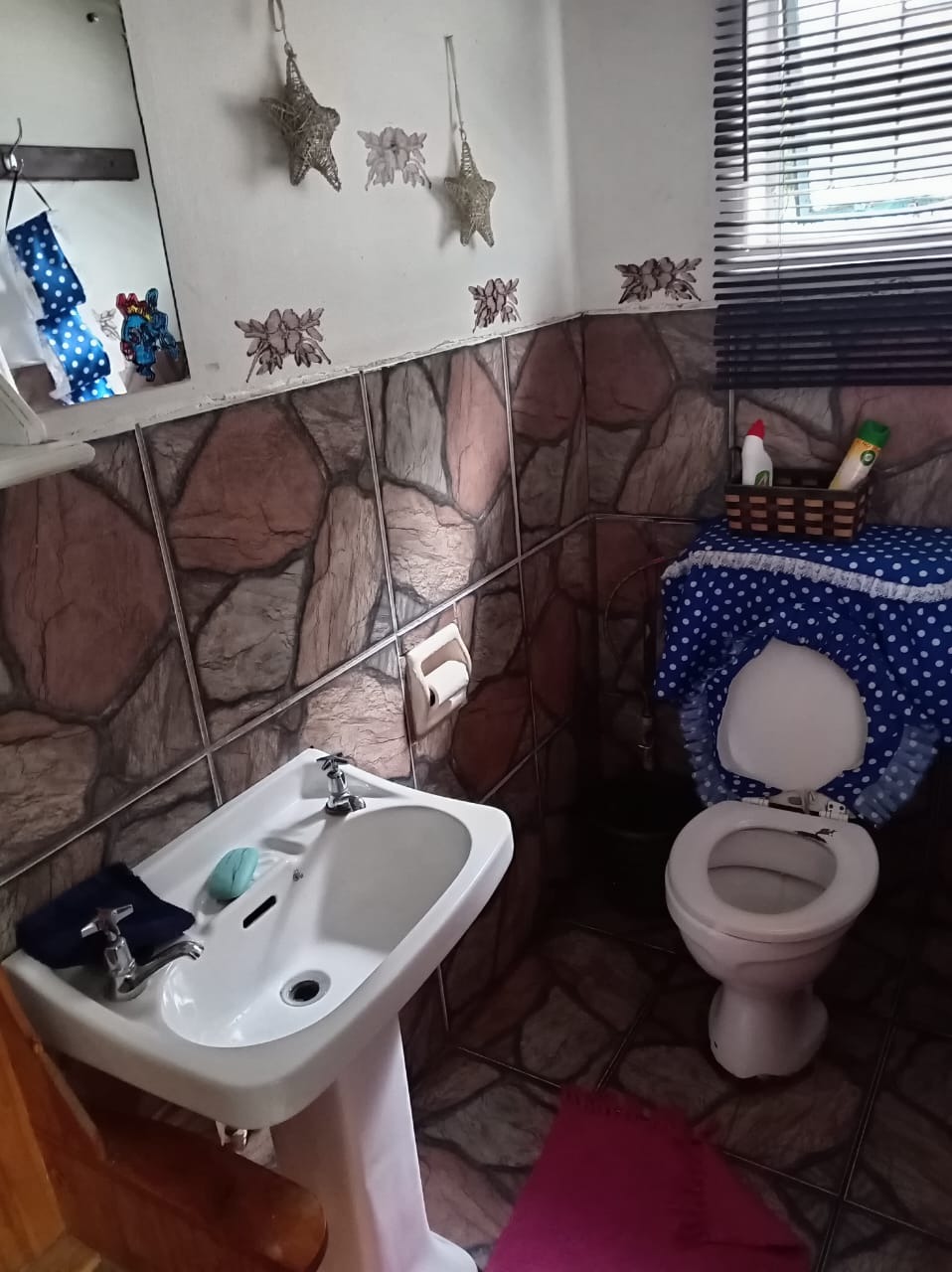 The large kitchen is a true centerpiece, offering ample cupboard space, a dedicated scullery, and room for all your appliances. A full bathroom includes both a shower and bath, with a separate toilet for convenience. The home boasts three bedrooms, each with built-in cupboards, while the main bedroom includes its own private basin and toilet.