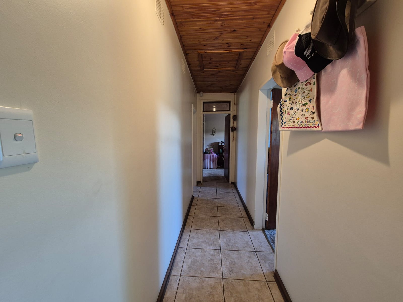 Wooden kitchen with scullery and laundry area.