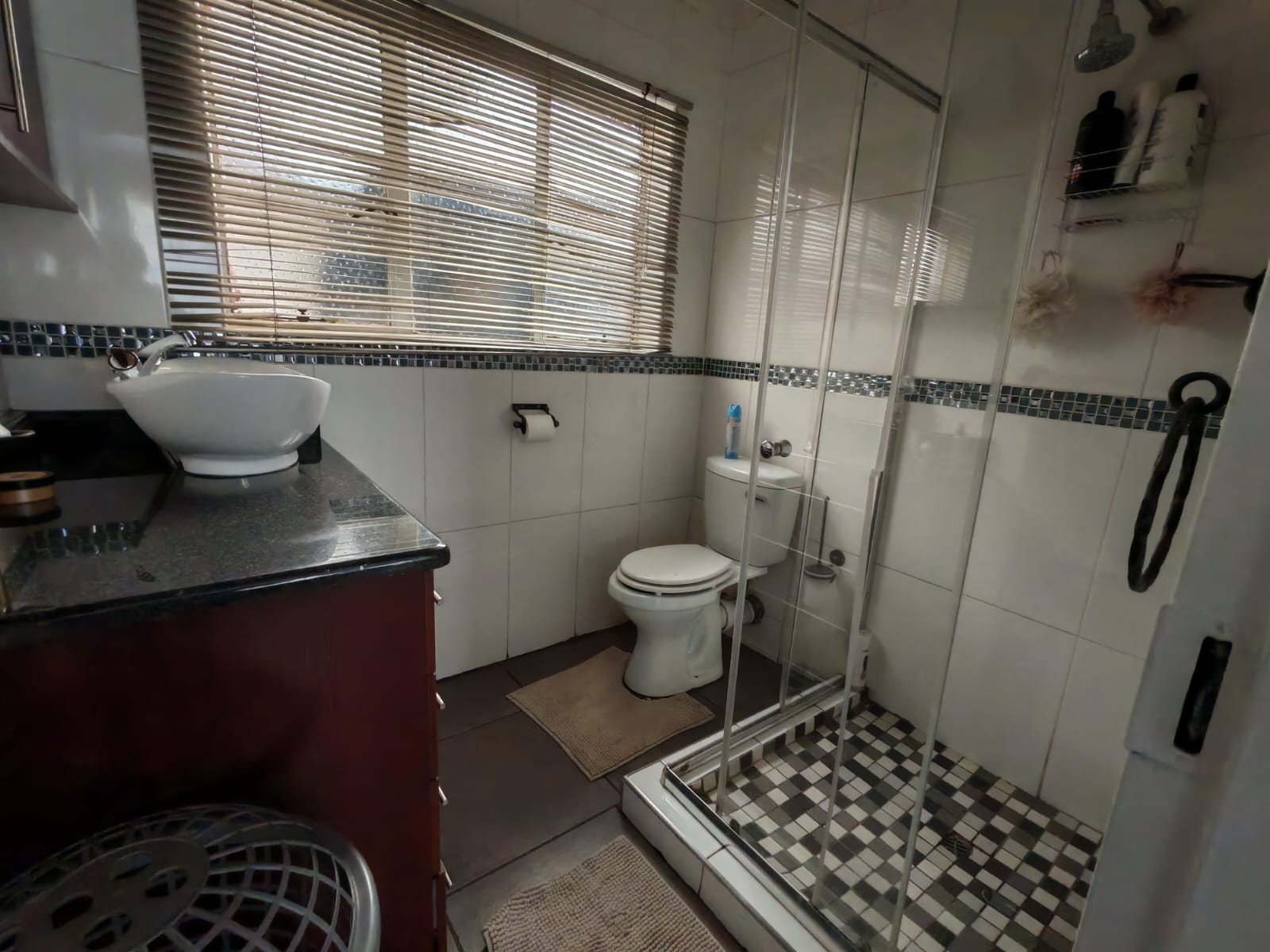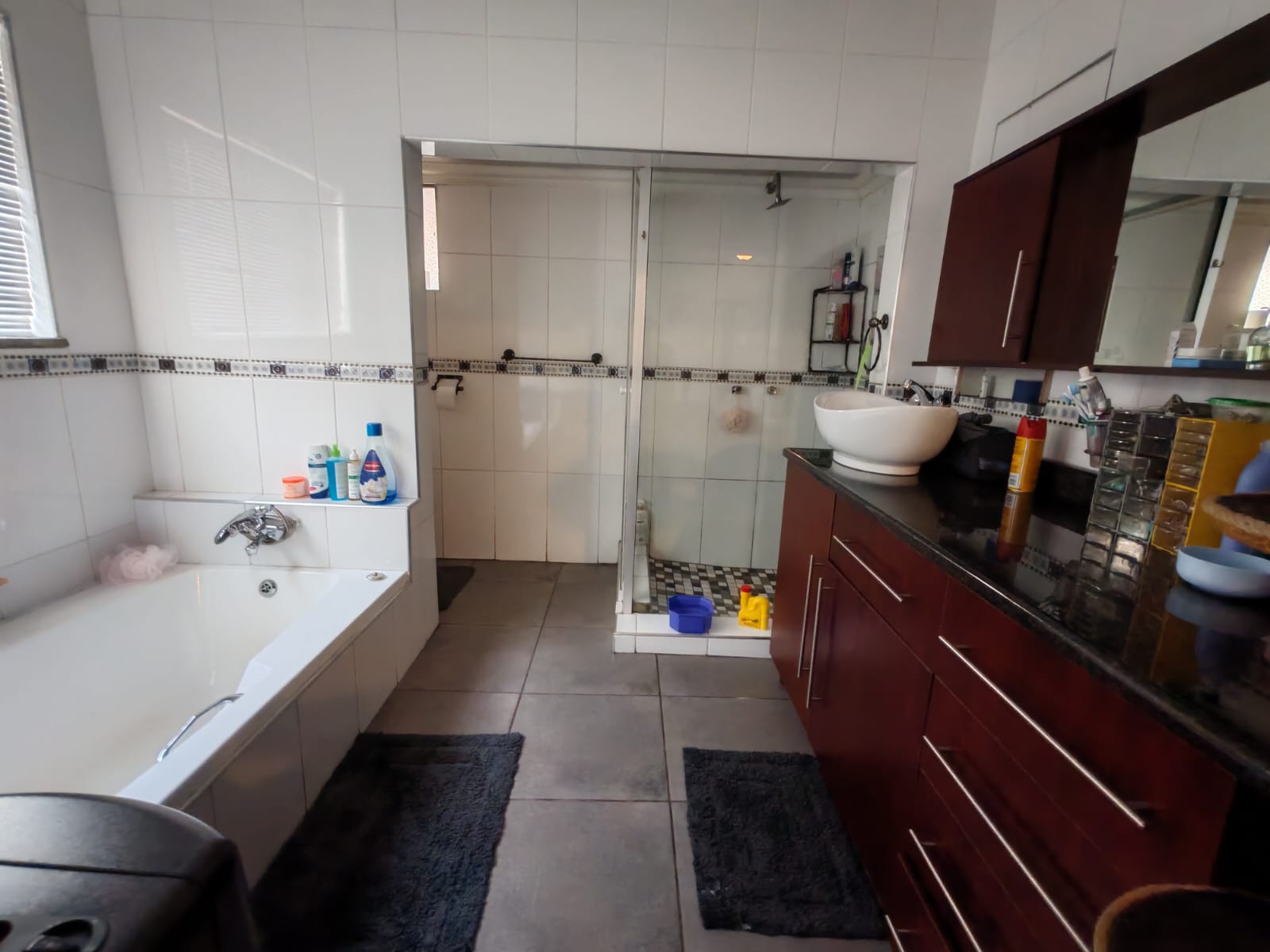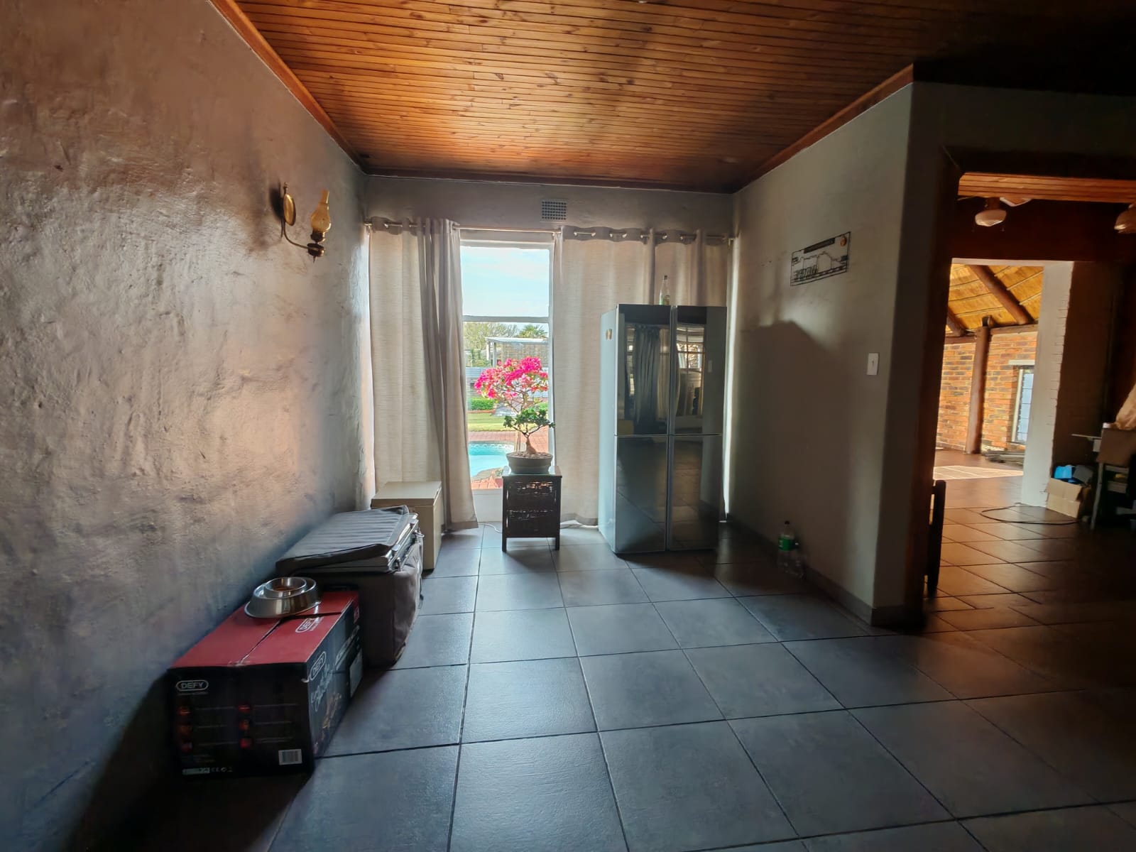 - Enclosed entertainment area with fan and fully tiled