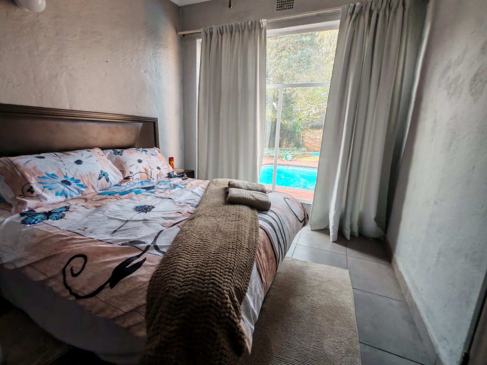- Established Garden: Well-maintained with a sparkling blue swimming pool
