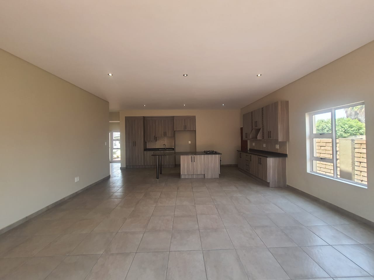 A Open Plan Lounge and Kitchen With Granite Tops and A Gas Stove