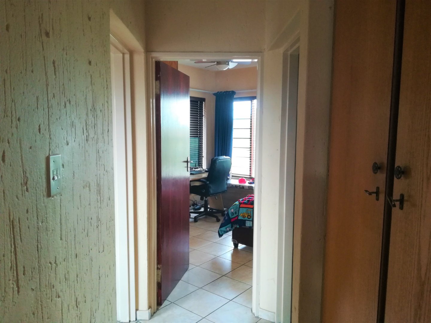 It is fitted with blinds and modern wooden ceiling fans.