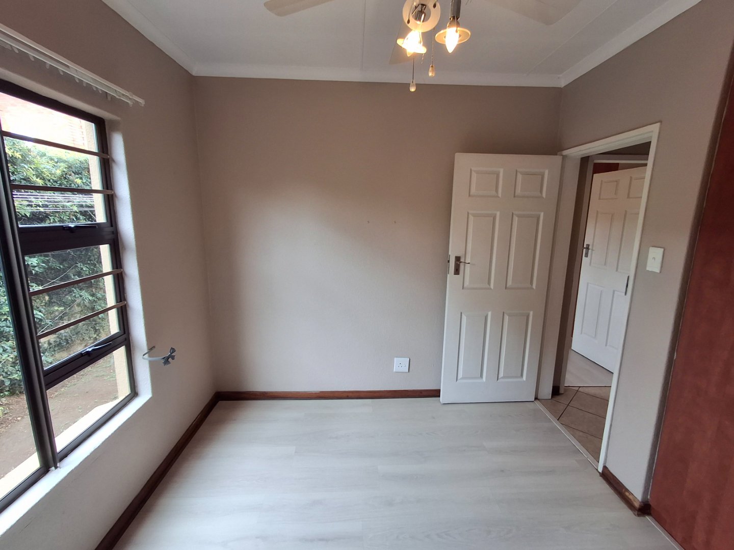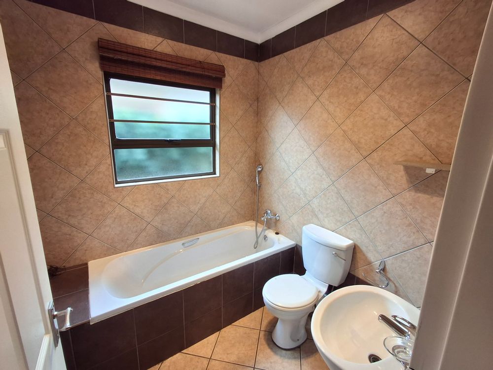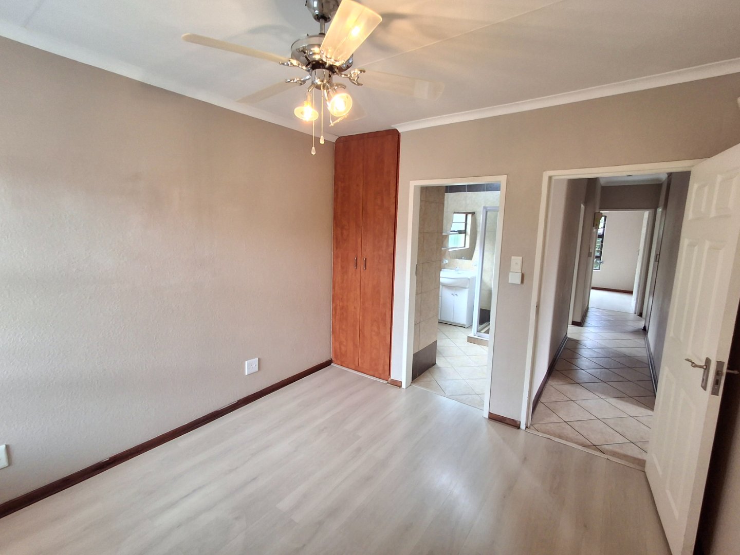 The property offers three spacious bedrooms with built-in cupboards and two modern bathrooms, including a main en-suite. The open-plan layout features a bright lounge with sliding doors leading to a private garden — perfect for entertaining or relaxing. The kitchen is neat and functional, offering ample cupboard space for everyday living.