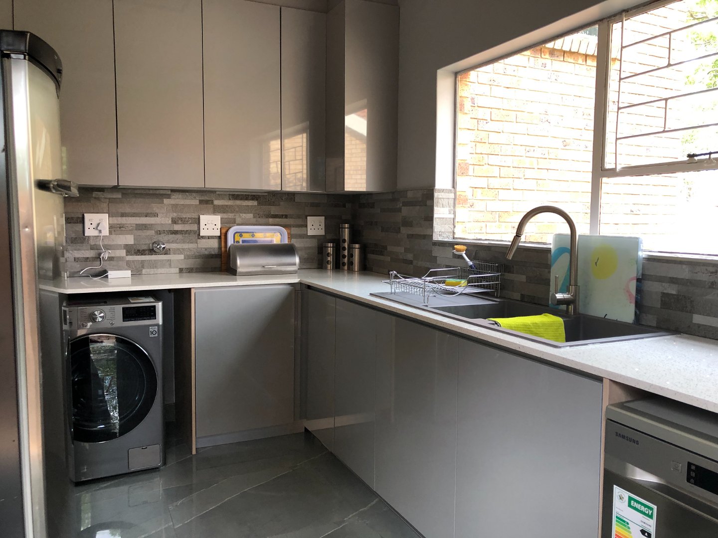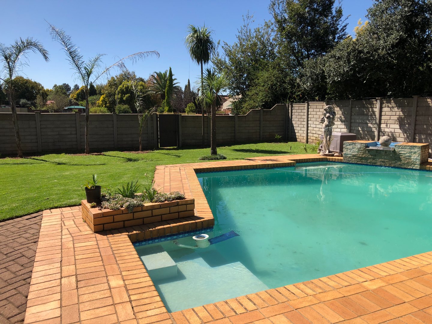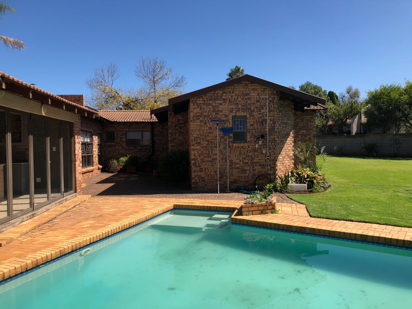 Security: The property is situated in a boomed- off neighborhood and street. It offers electric fencing, outside beams, trelli doors, burglar bars and an inside alarm system.