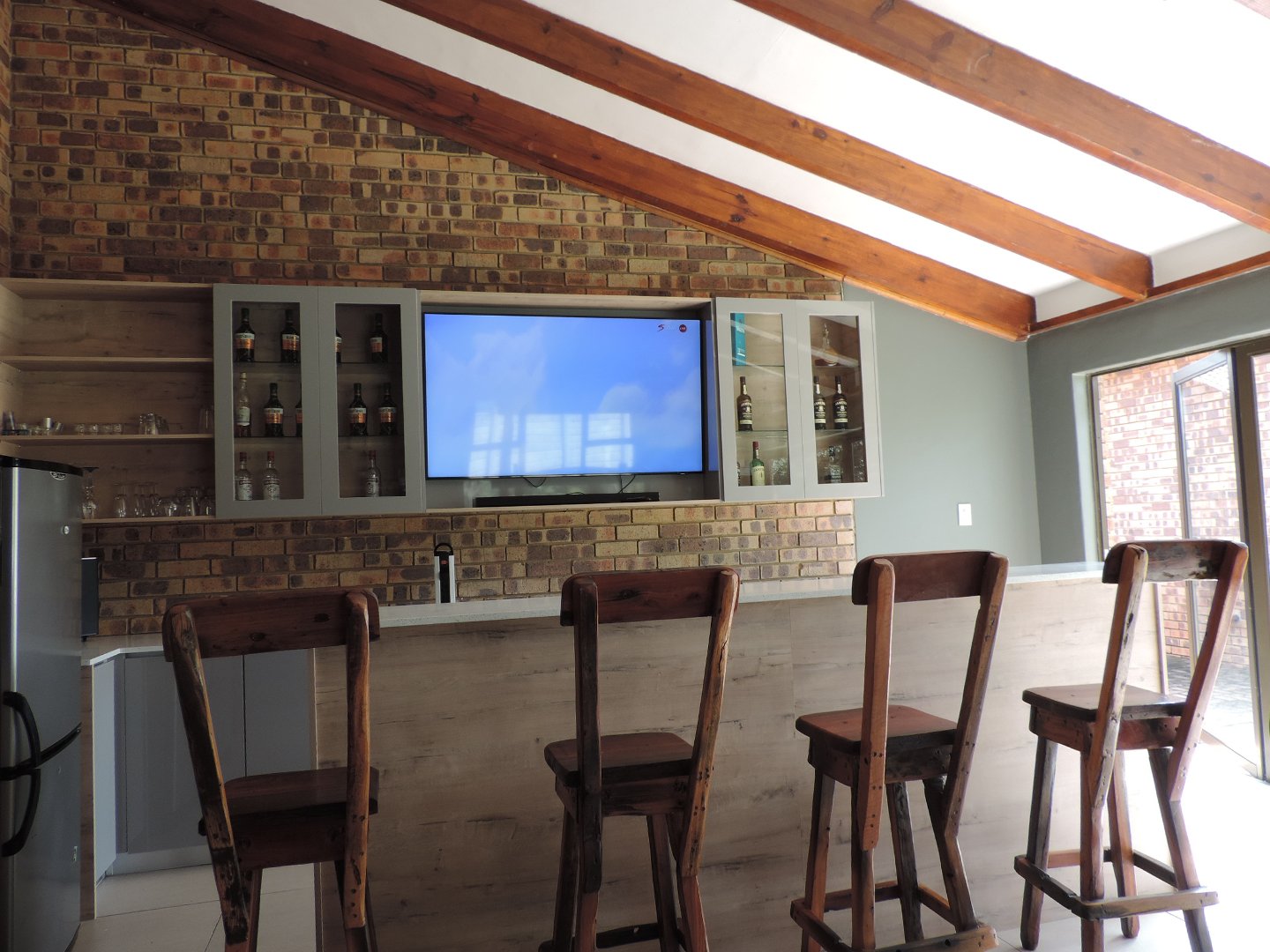 Entertainment area: The entertainment area is the heart of the home, featuring a built-in bar and braai, opening up with stacking doors to the pool and garden.