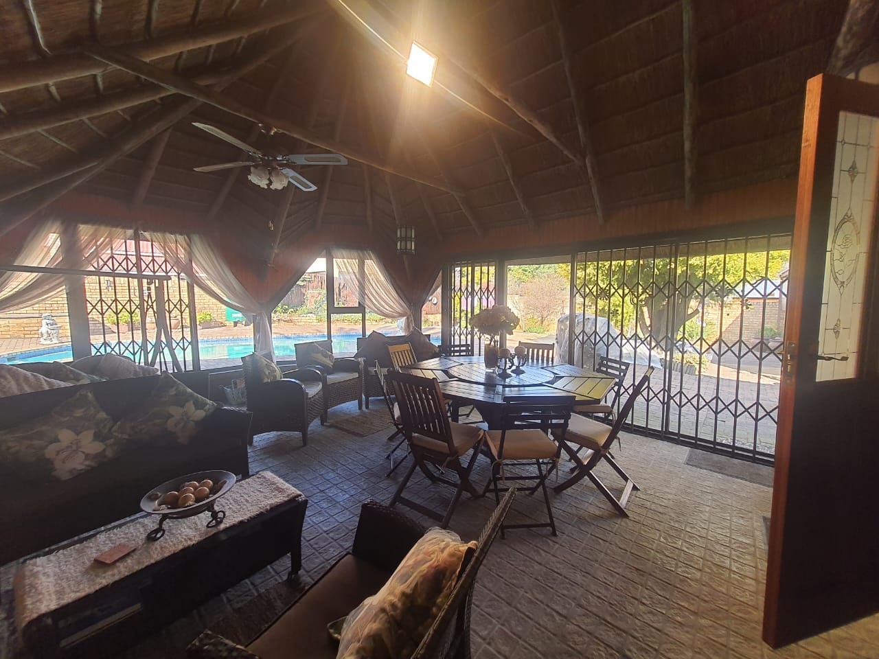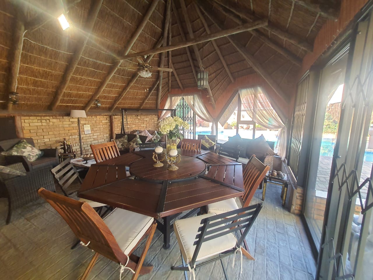 The Entertainment Area has a Big Indoor Braai leading Out To The Sparkling Pool