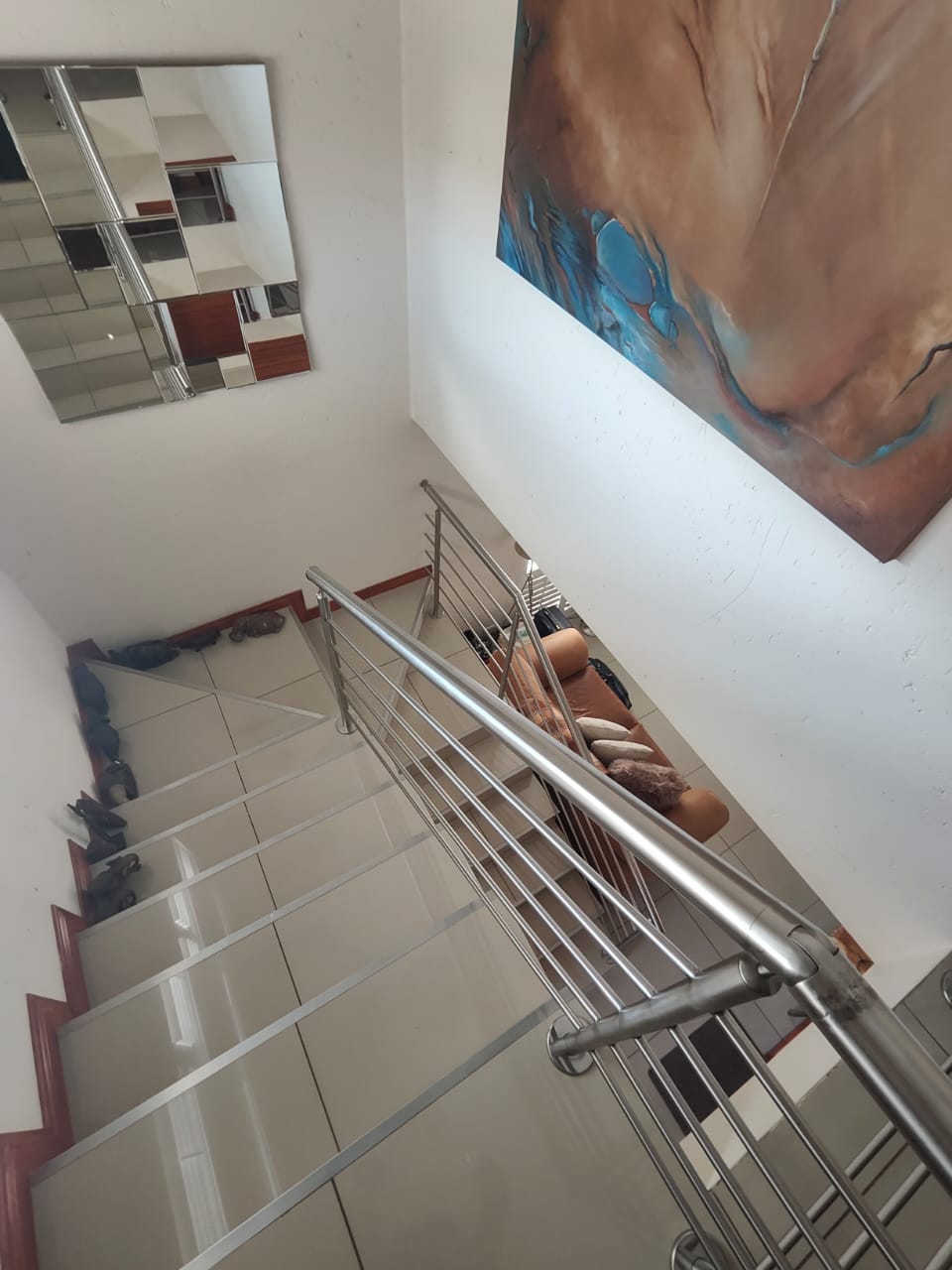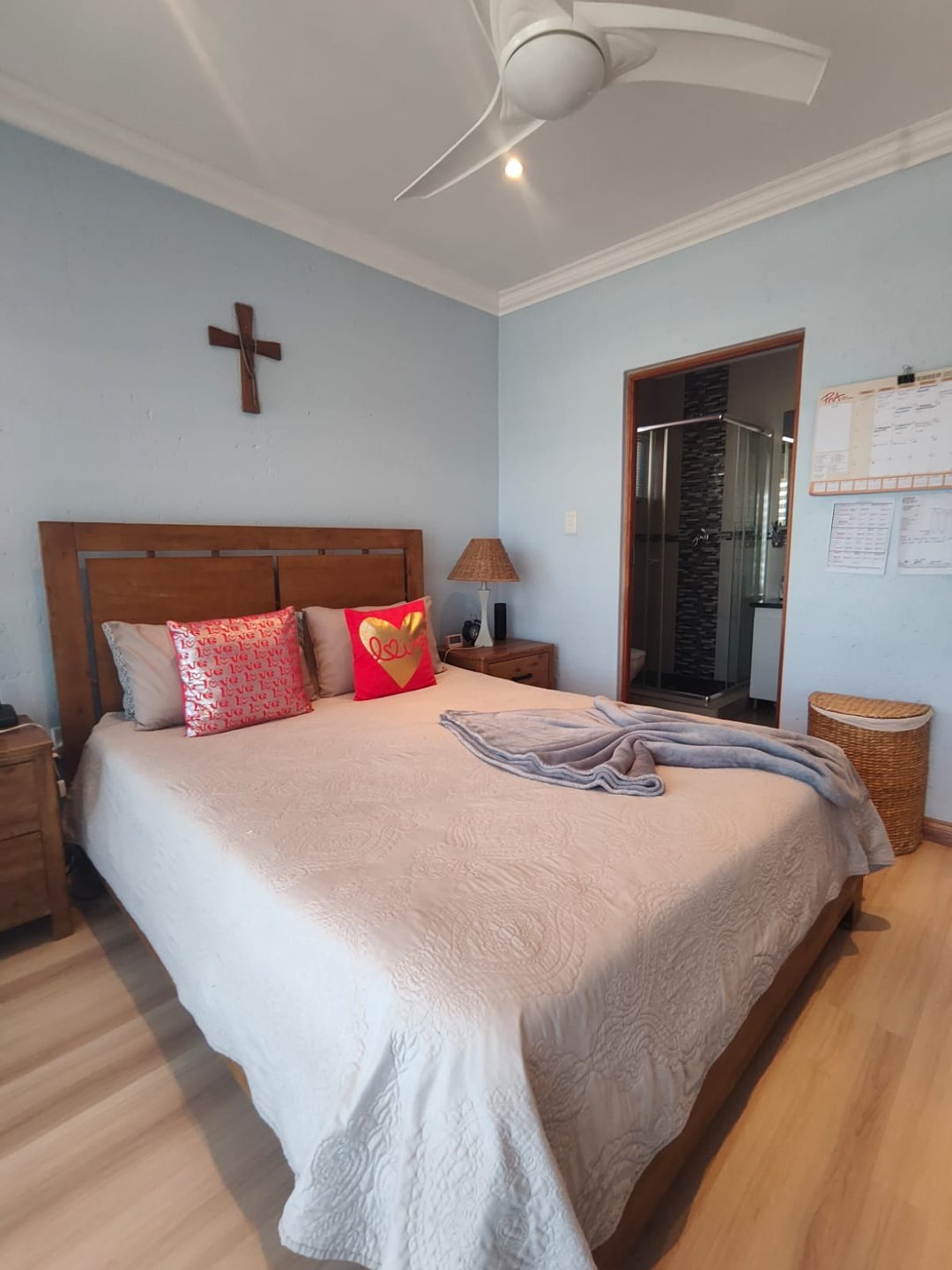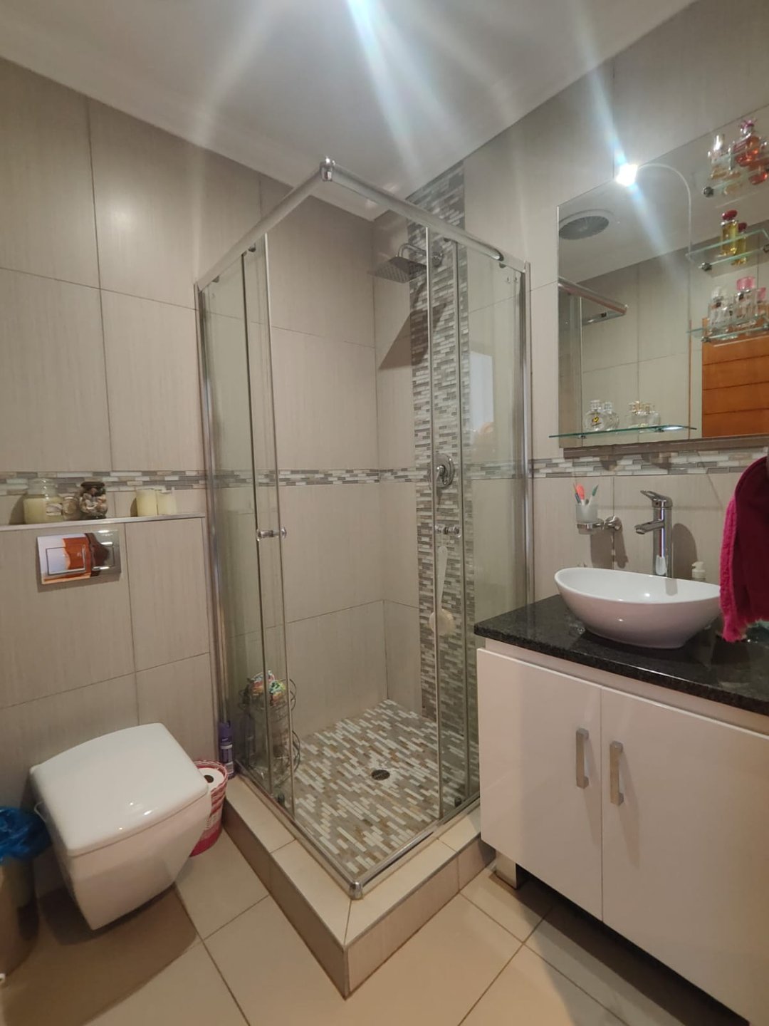 This unit has a customised building style for your comfort, beautiful ceramic tiles and floating flooring upstairs and a solar geyser.