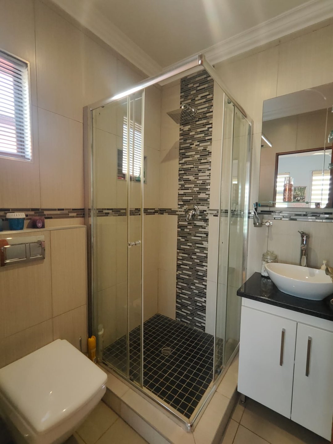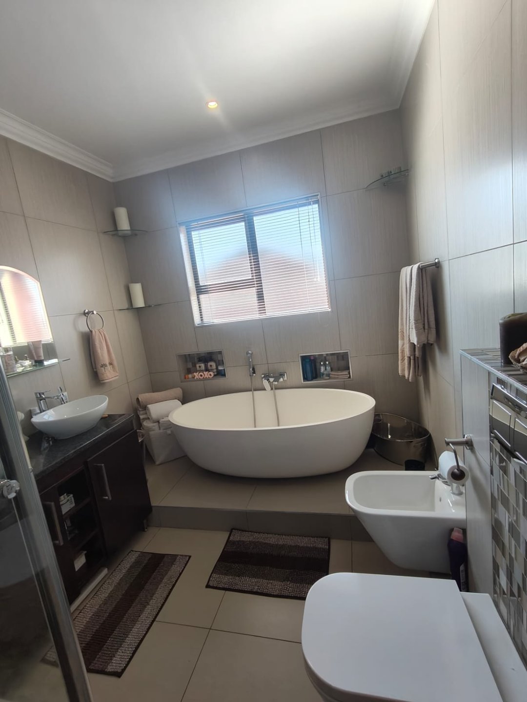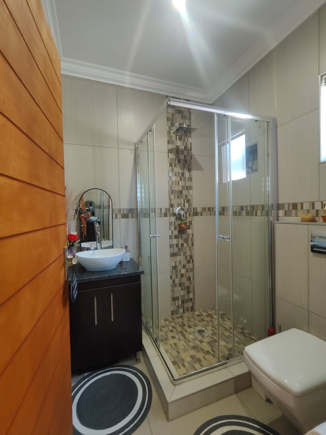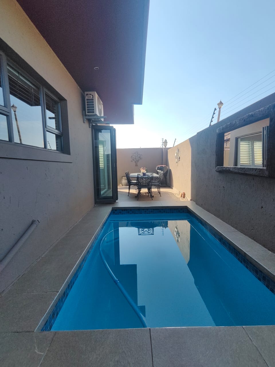 This unit has a customised building style for your comfort, beautiful ceramic tiles and floating flooring upstairs and a solar geyser.