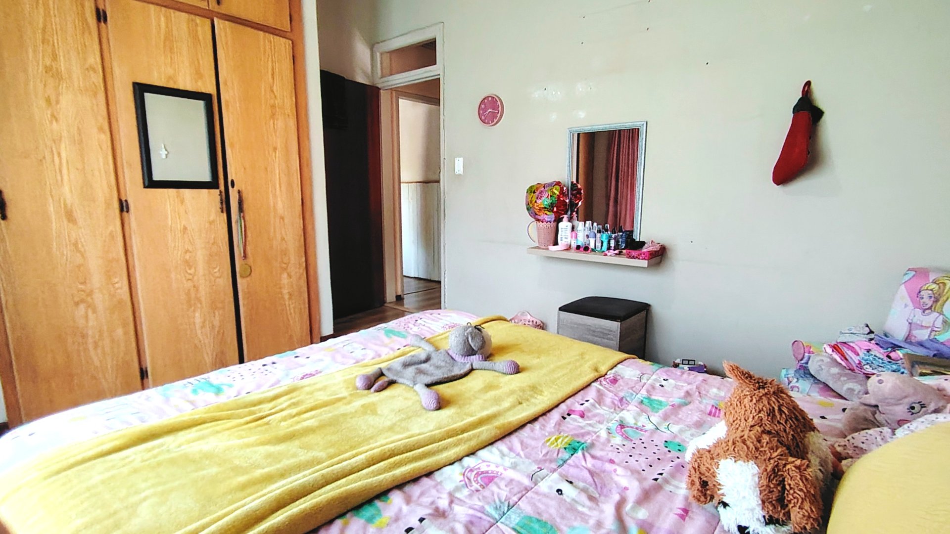All three bedrooms are spacious, well-kept, and filled with natural light, each offering built-in cupboards. The home includes a full bathroom, while the main bedroom enjoys the added convenience of its own private toilet. A separate study or home office provides valuable additional space, perfect for remote work or hobbies.