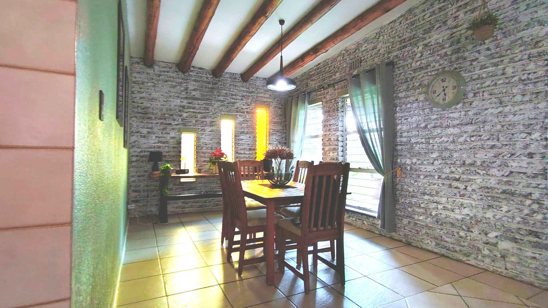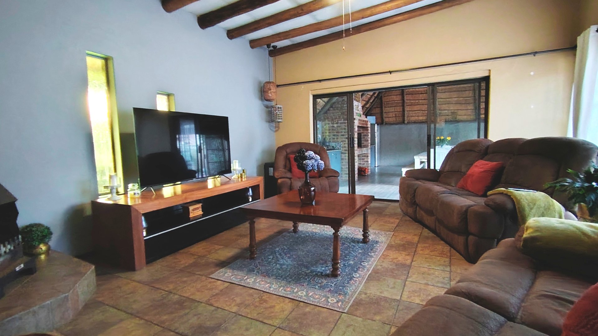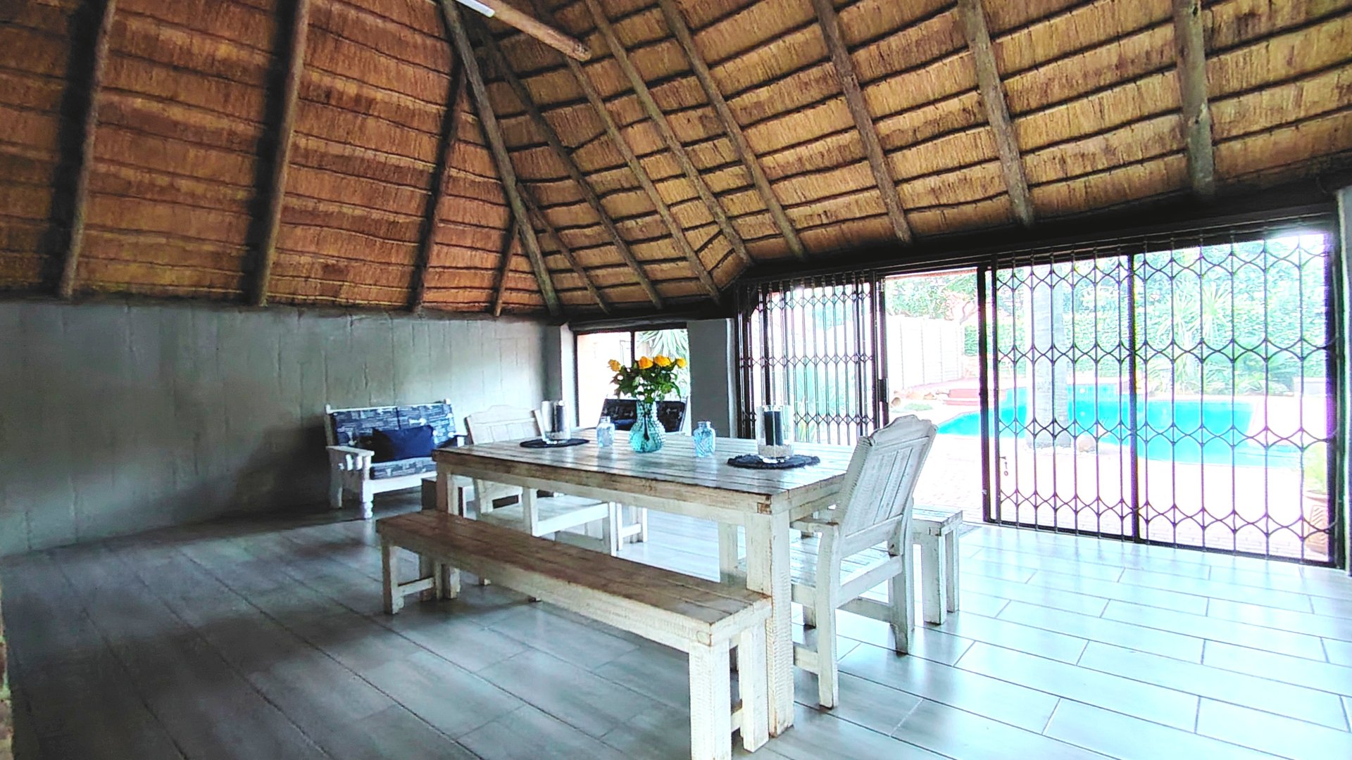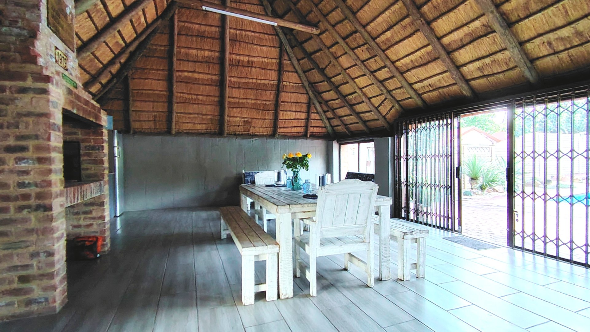 Situated on a large stand, the property boasts a double garage as well as additional covered, secure parking. Outdoor features include a large swimming pool and an entertainment area, ideal for relaxed weekends with family and friends. A borehole adds further value and convenience.