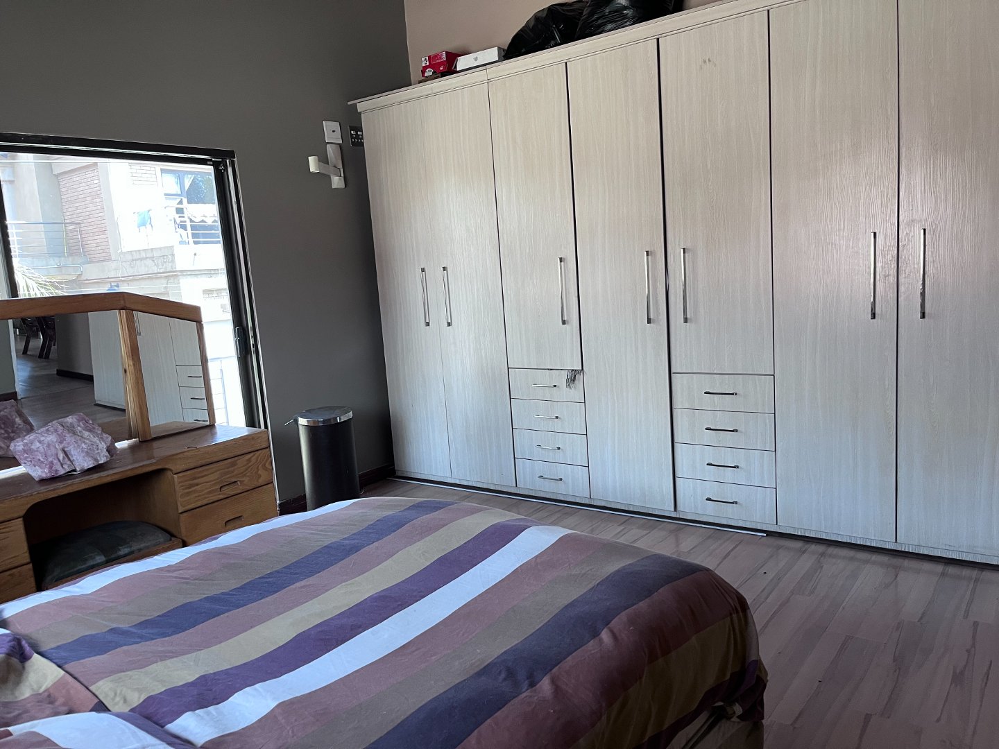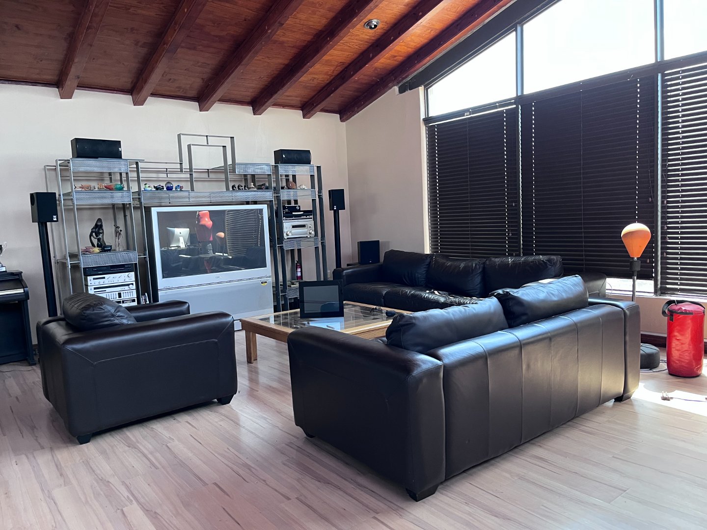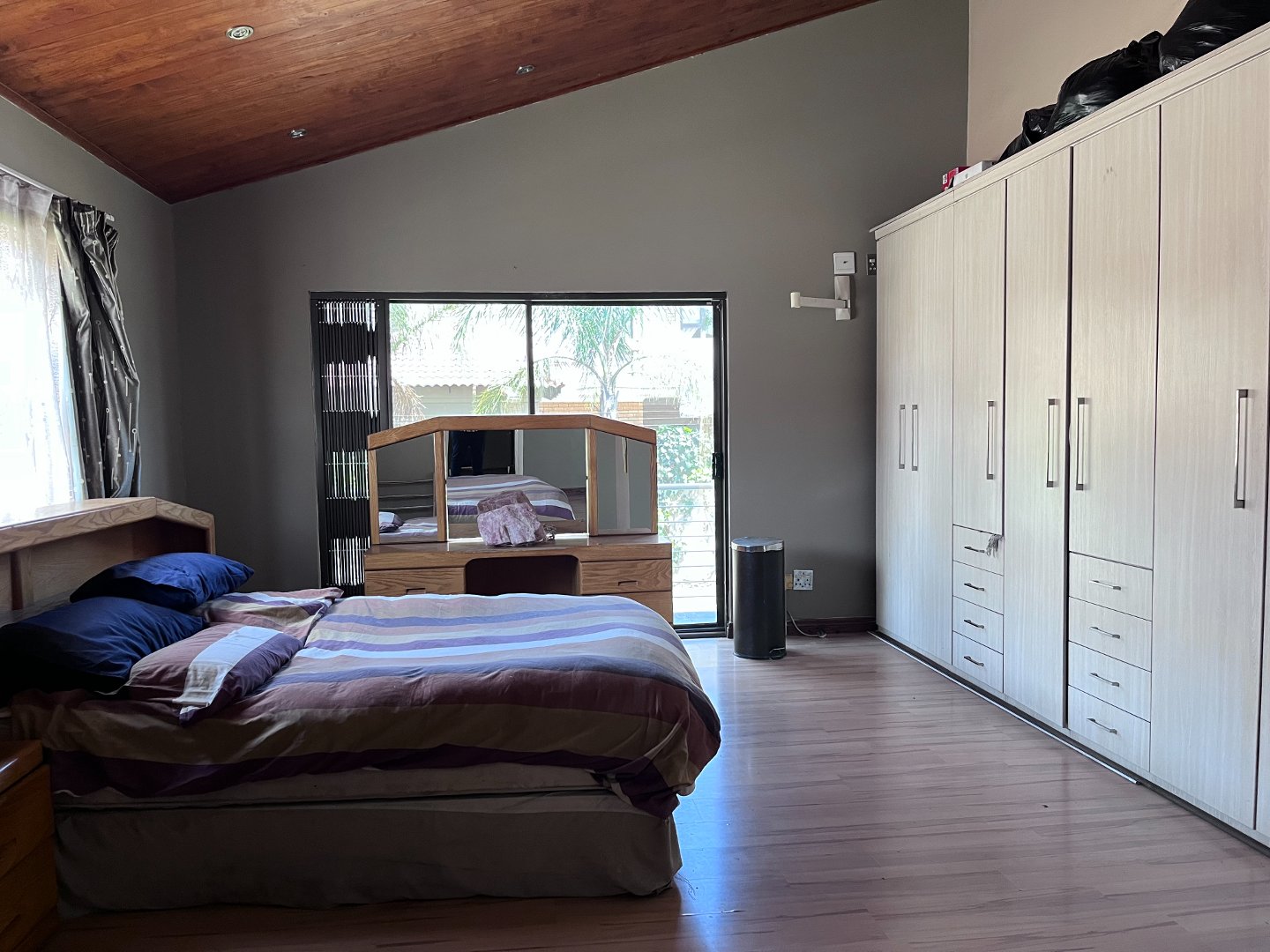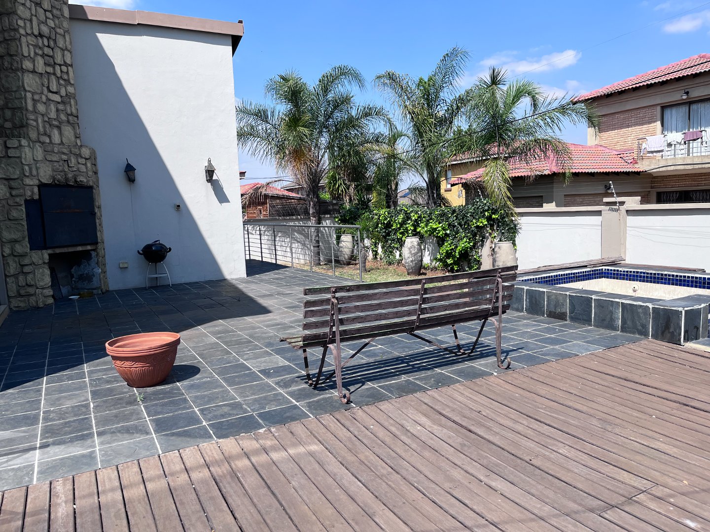 The open plan living areas with its extra large windows makes the house light and airy inside. Stacking doors opens to the outside patio area with the build-in braai. Downstairs you will also find the 4 generously sized en-suite bedrooms and a guest toilet. Upstairs is an extra large open plan area that opens to a private balcony. 3 Garages and ample parking space for guests.