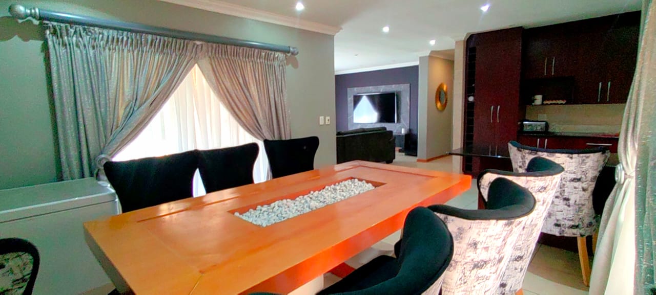 Step outside to discover a spectacular entertainment area that seamlessly blends indoor and outdoor living—ideal for summer Braais or cozy winter nights under the stars. The generous balcony offers breathtaking views of your massive yard—a true oasis for children at play.