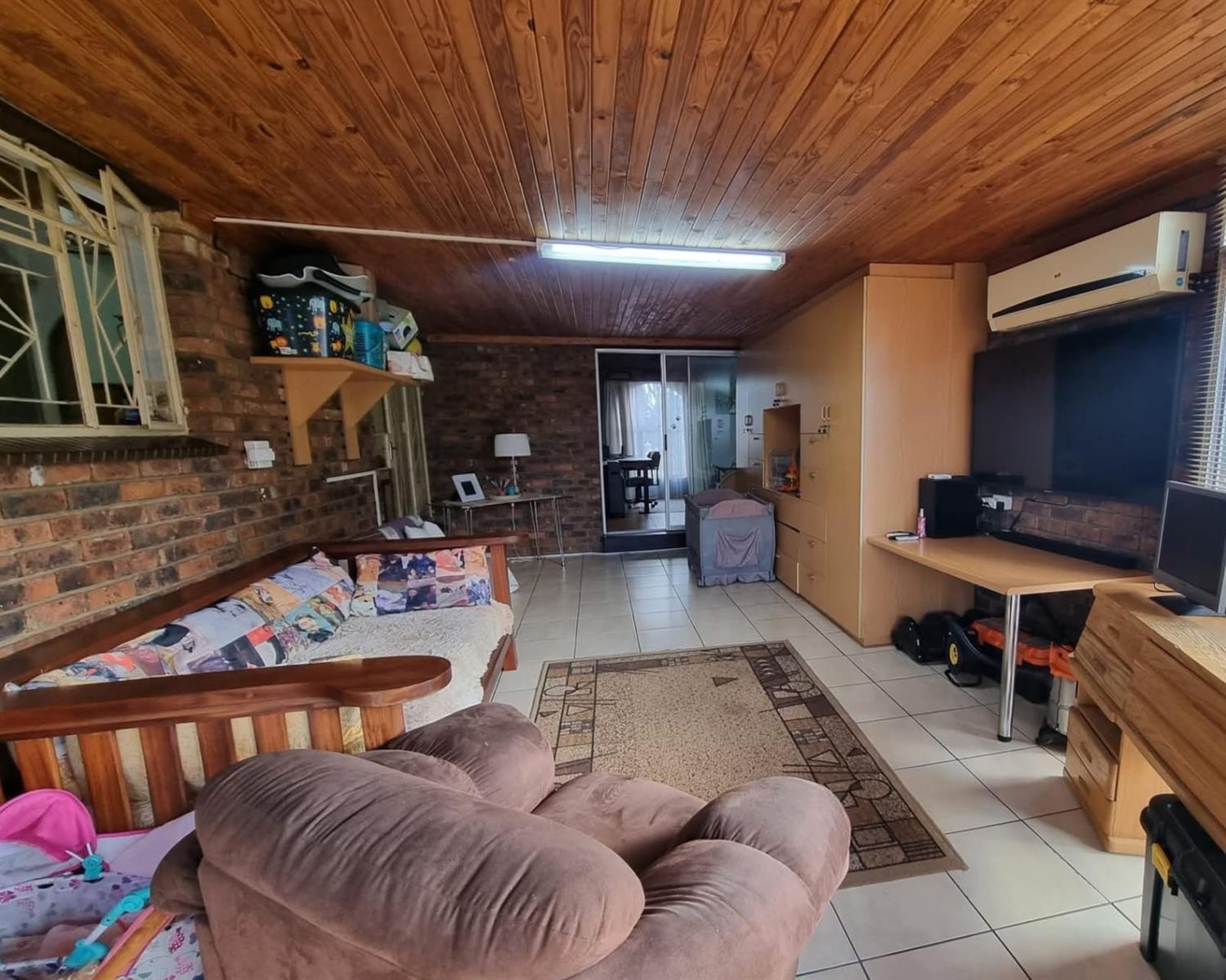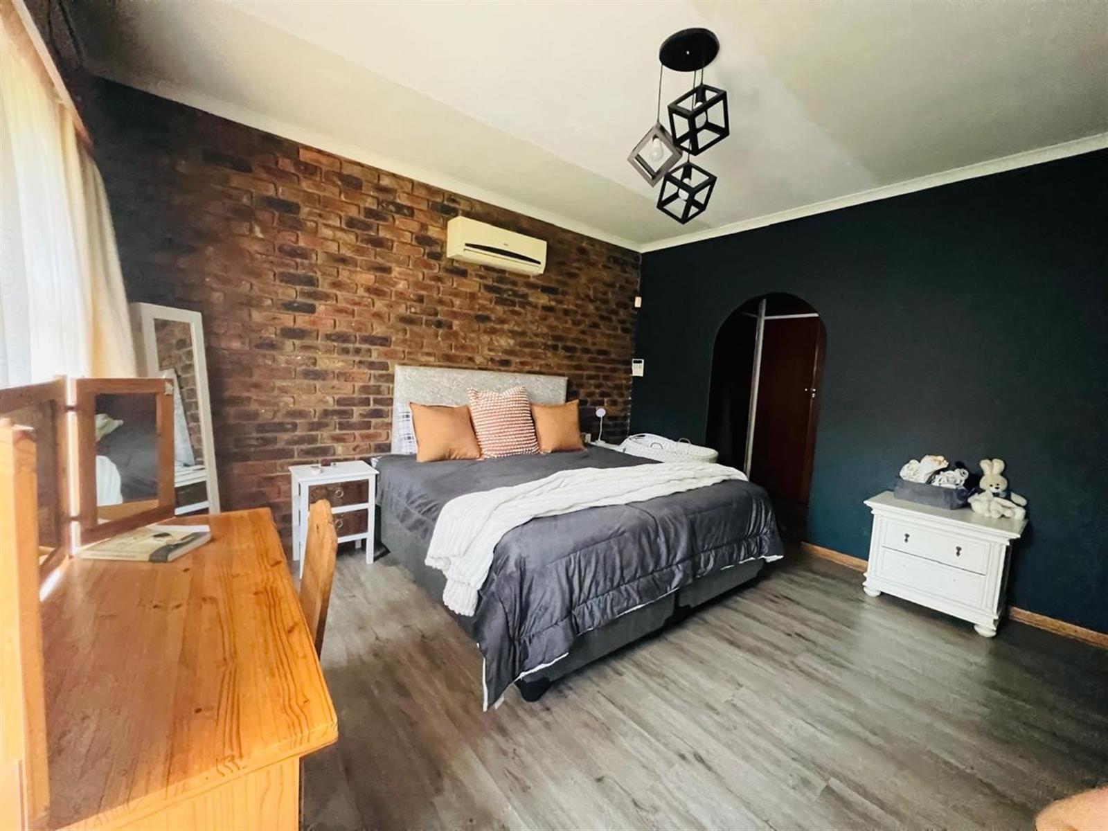 This home is designed with comfort in mind, featuring air conditioning to keep you cool year-round. Built-in cupboards and a walk-in closet provide ample storage space. Additional features include burglar bars for peace of mind, fast internet connectivity, and stylish steel windows.