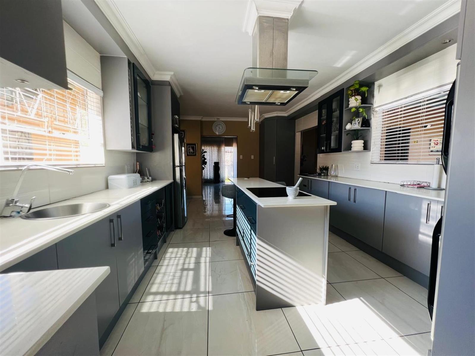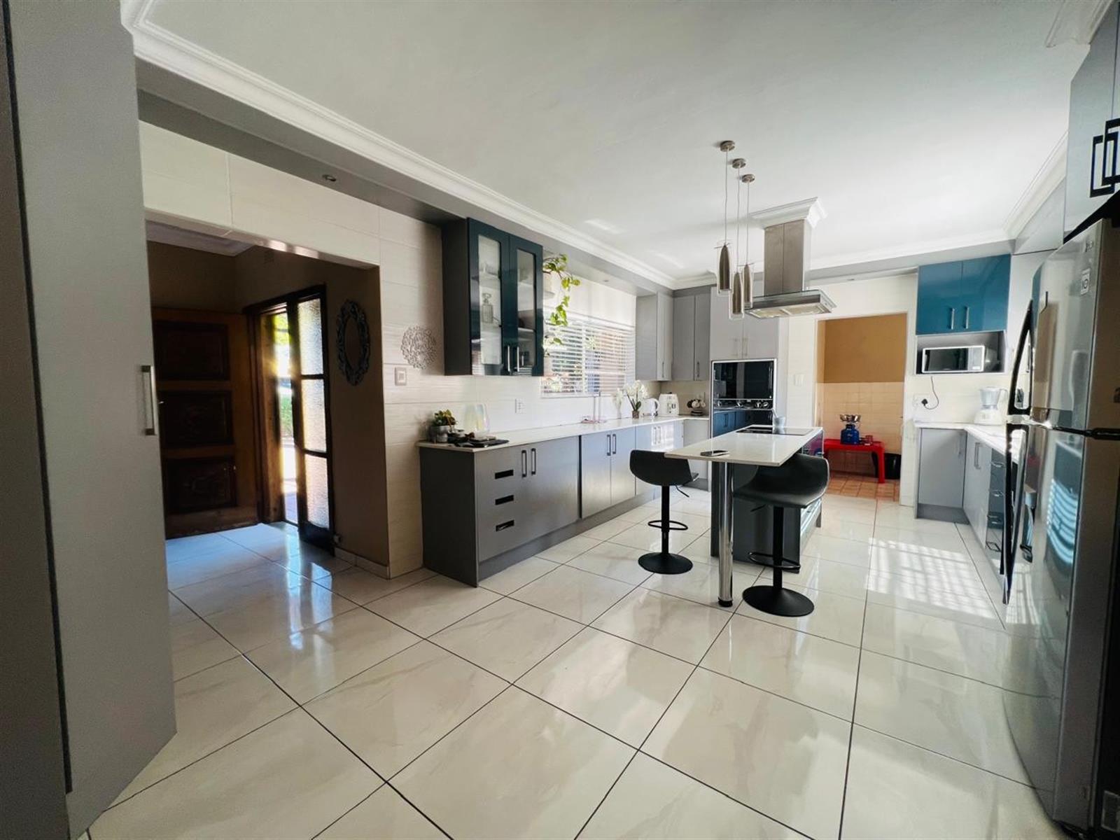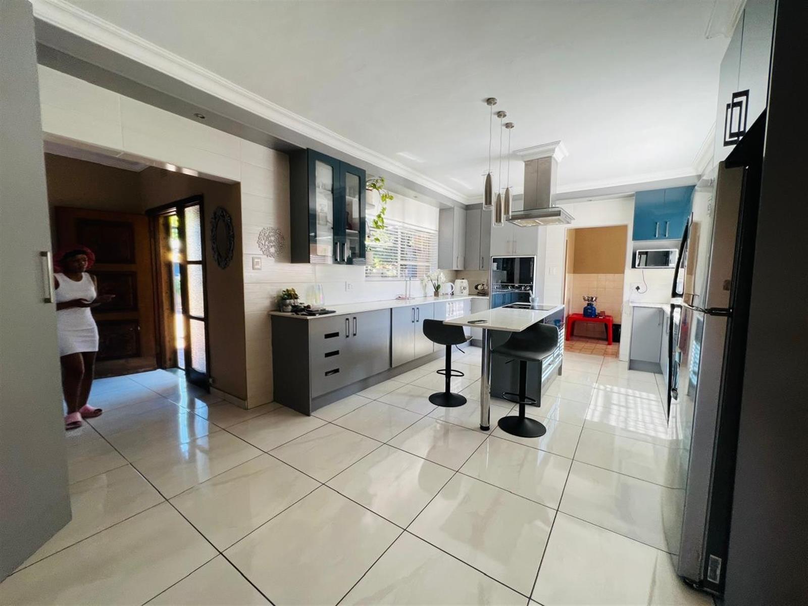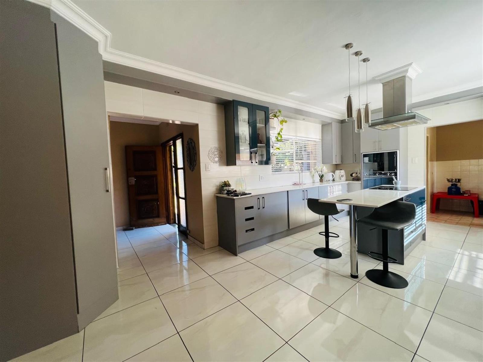 Outdoor living is a delight with a sparkling pool, perfect for enjoying the warm Gauteng sunshine. Whether you prefer a refreshing swim or entertaining friends and family, this outdoor space is sure to impress. The property includes two garages, providing secure parking and additional storage space.
