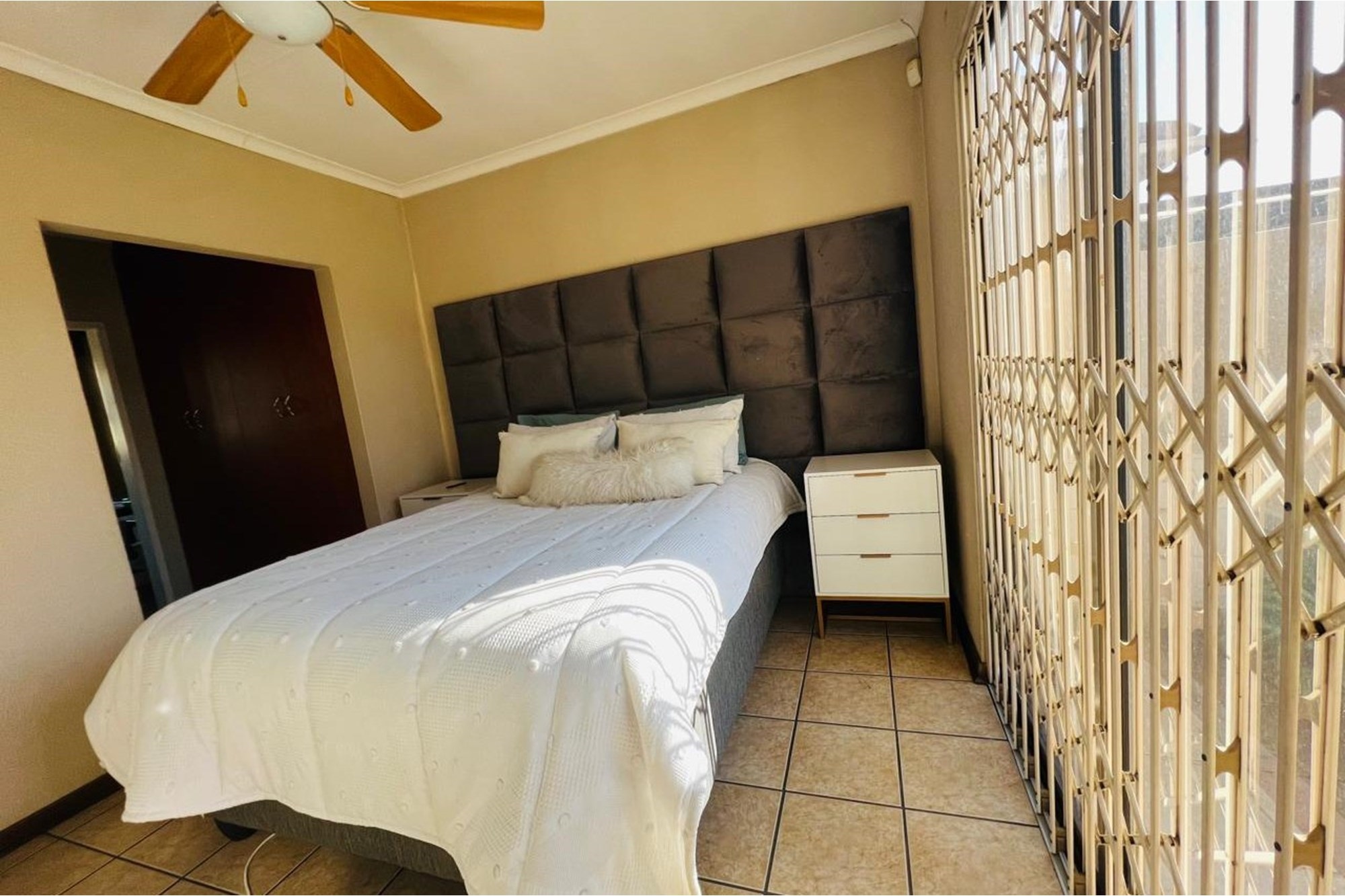 Welcome to this stunning townhouse, now available for sale in the highly sought-after Vanderbijlpark SE neighbourhood of Gauteng. Situated on a quiet road, this owner-occupied property boasts remarkable convenience and accessibility to vital amenities, making it a perfect residence for families and professionals alike. Featuring three spacious bedrooms and two modern bathrooms, the townhouse promises comfort with built-in closets, ceiling fans, and en-suite bathrooms, offering ample space and privacy. The main living area is well-appointed with high-speed fiber internet, ensuring seamless connectivity for work or leisure. The property's outdoor space is equally impressive, showcasing a beautifully maintained garden, a delightful patio perfect for relaxation and entertaining, and a solid fence ensuring a safe location for your family. The property includes a convenient garage with automatic doors that comfortably accommodates two cars, along with an additional visitors parking space. Located in a prime area, this townhouse is in close proximity to a myriad of amenities, including schools, universities, a hospital, fitness centers, shopping malls, and public transportation, ensuring easy access to all essentials. Secure this incredible opportunity to own a slice of tranquility in one of Vanderbijlpark's most desired locales. Don't miss out on making this fantastic townhouse your new home. Contact us today to schedule your viewing appointment