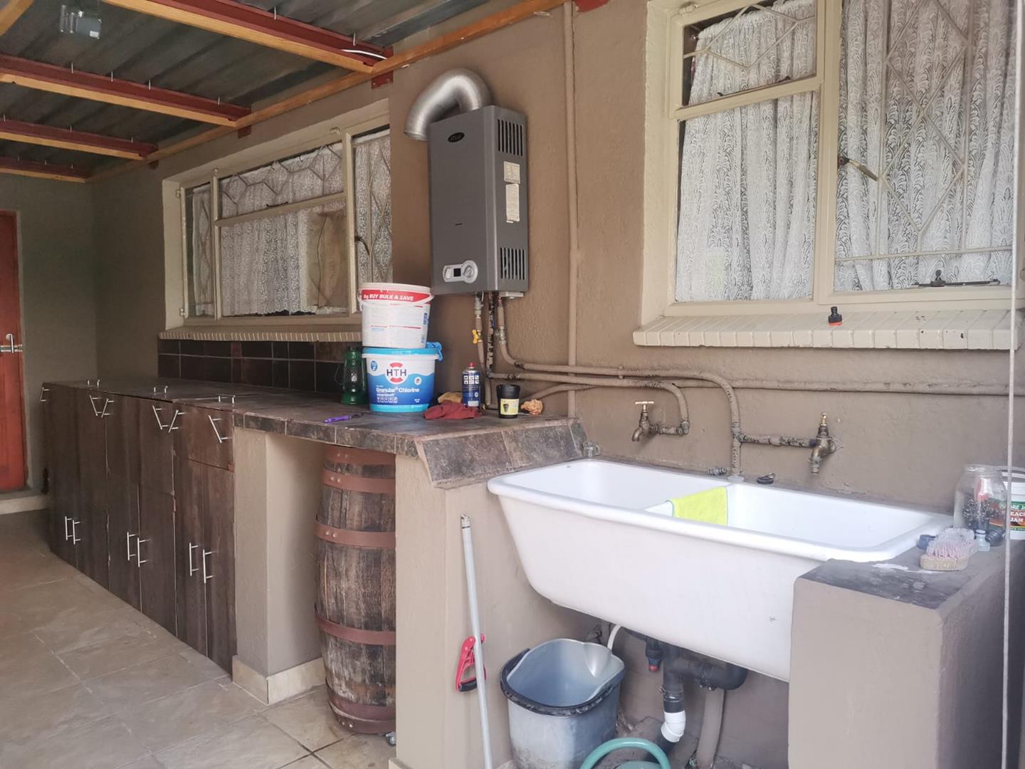 Sustainability and efficiency are key features of this home, highlighted by the inclusion of solar panels and a gas geyser. Additional storage is available with two tool sheds and a charming Wendy house.