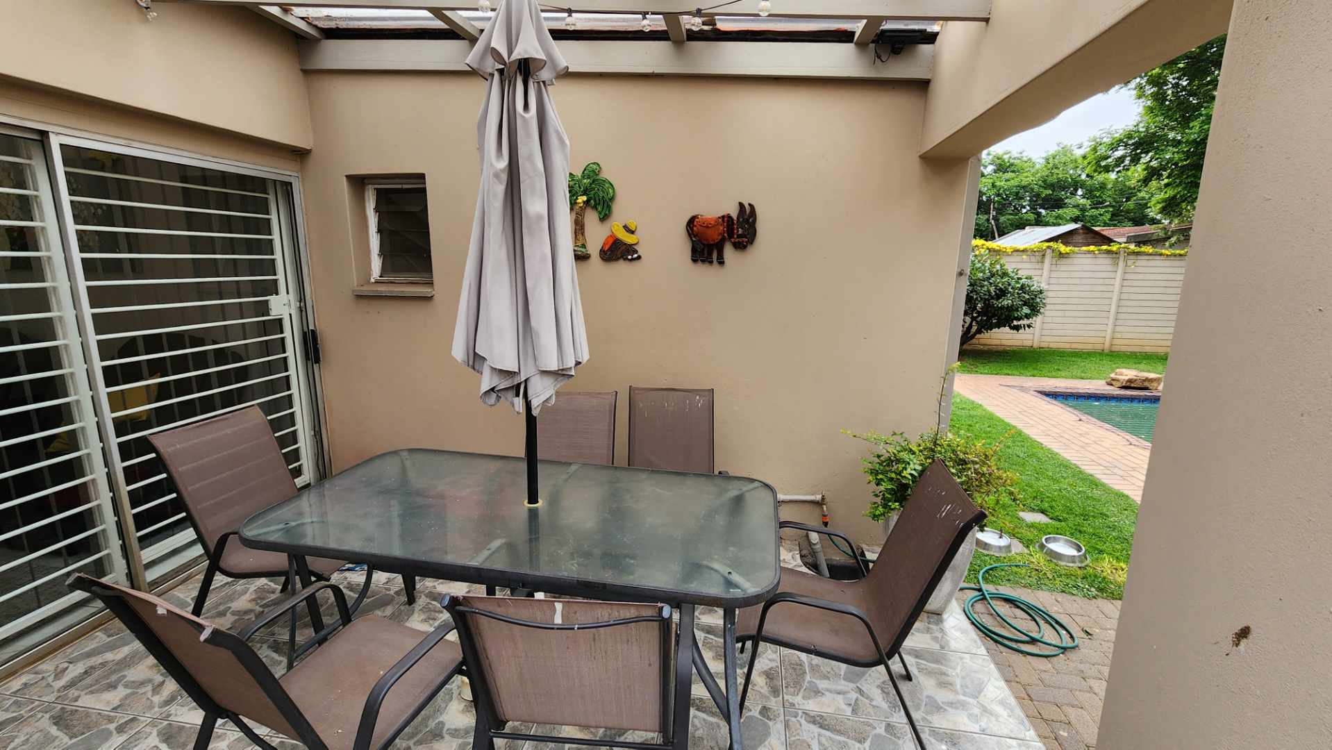Outdoor living is equally impressive with a beautiful patio and a charming pergola, perfect for alfresco dining or simply unwinding in the fresh air. Take a refreshing dip in the sparkling swimming pool or enjoy the meticulously landscaped garden, supported by an efficient irrigation system and a reliable borehole.