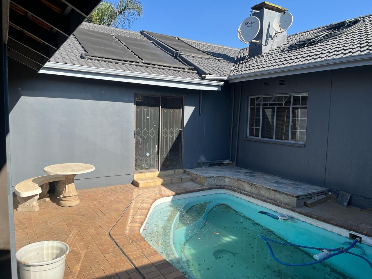 Sparkling Swimming Pool and newly painted, well-kept yard