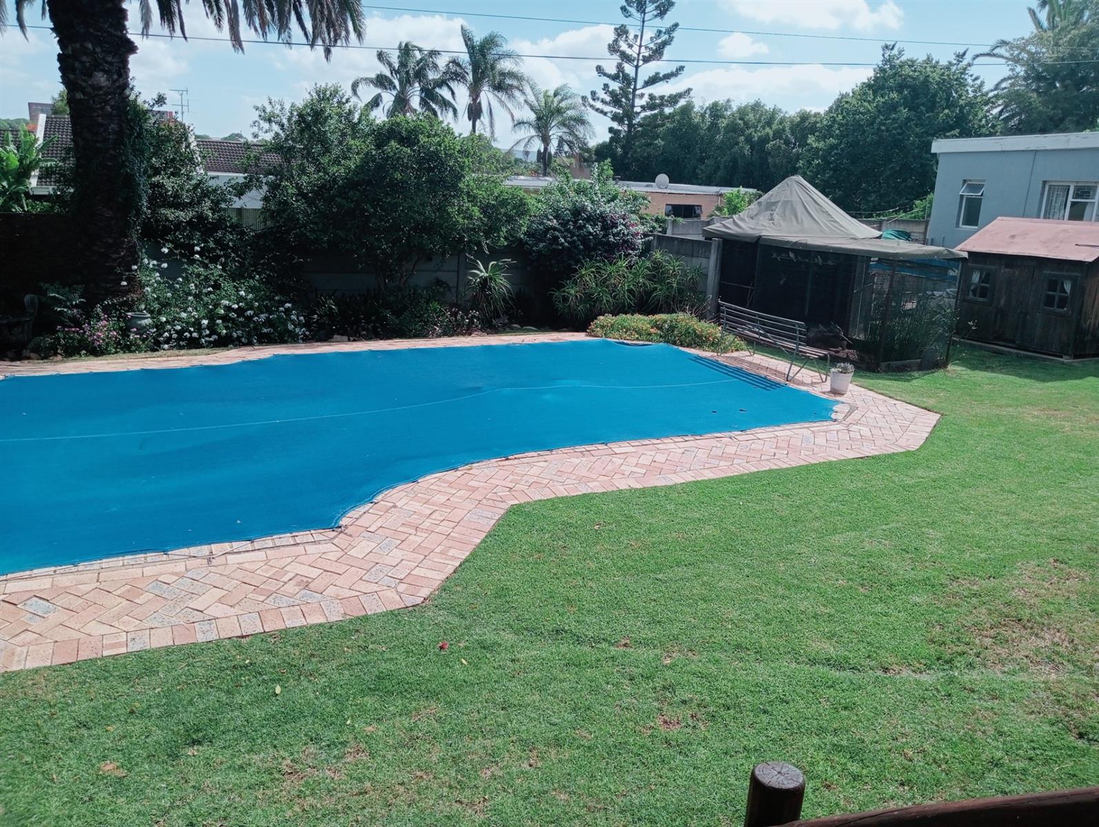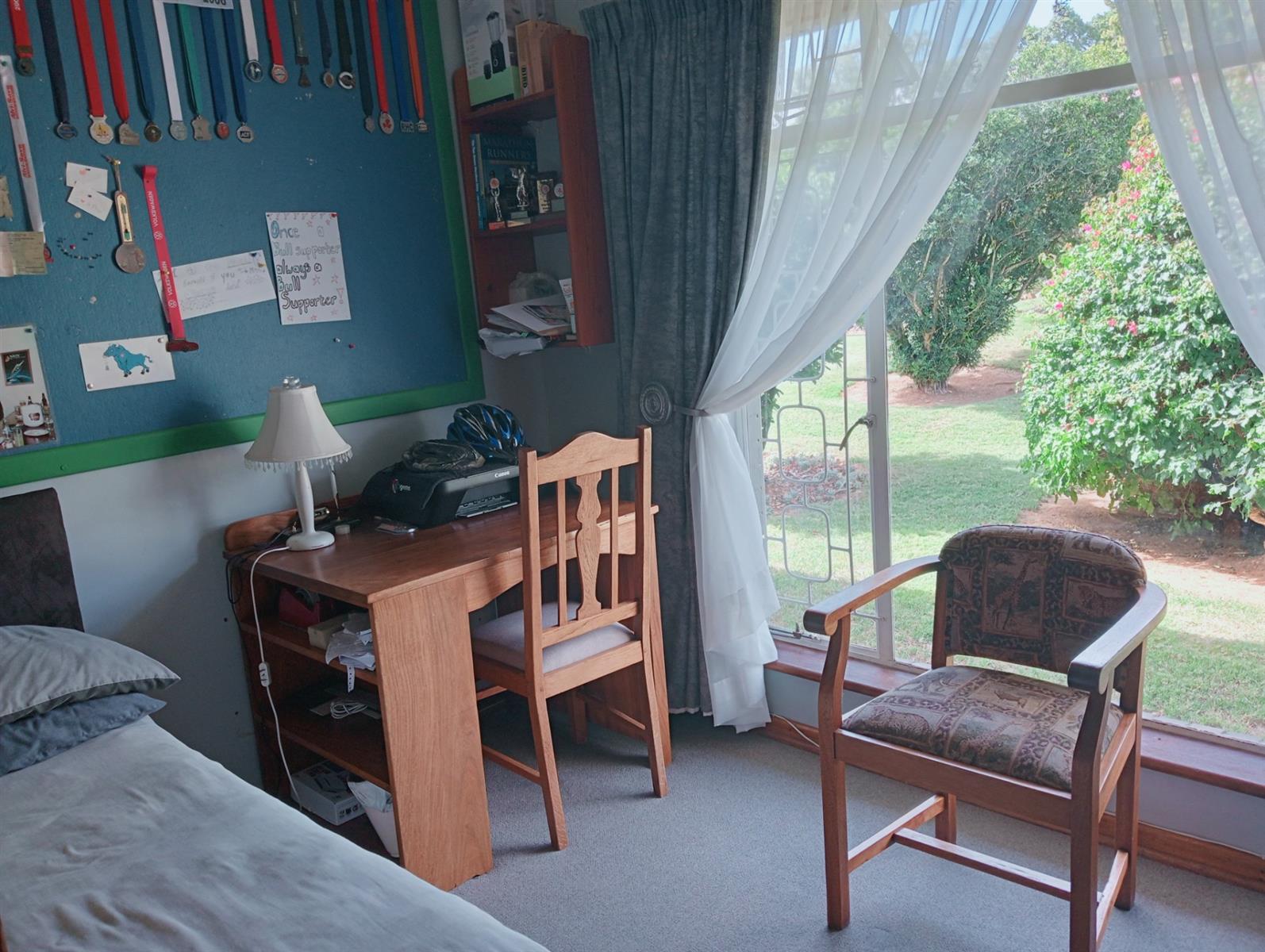 The property also includes practical amenities such as a workshop and a Wendy house for additional storage. With two garages, parking is never a concern.
