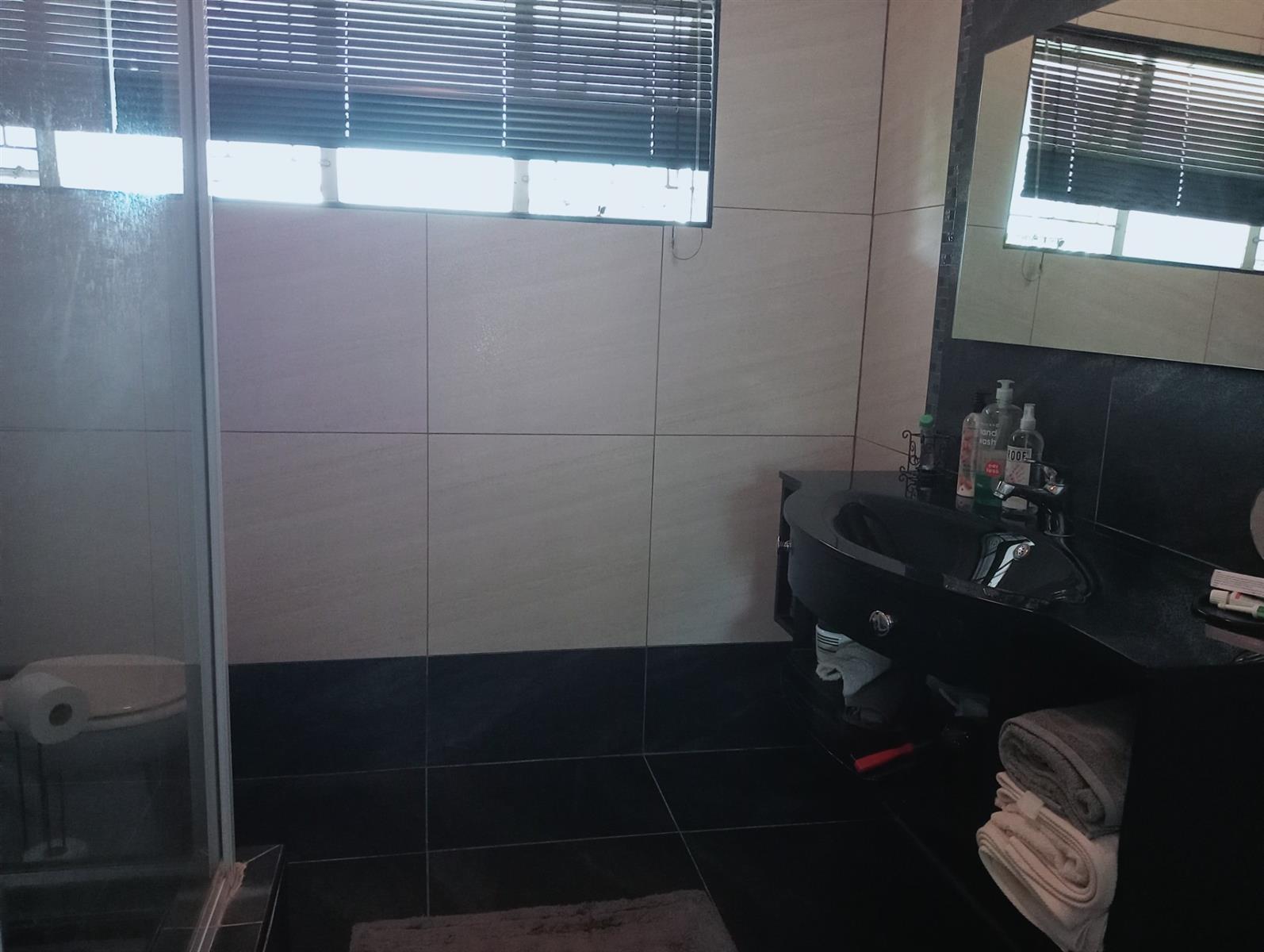 Safety and security are paramount, and this home is fitted with an alarm system, burglar bars, and security gates. The completely walled property features a concrete wall along with a stylish slate roof and steel windows, combining contemporary design with durability.