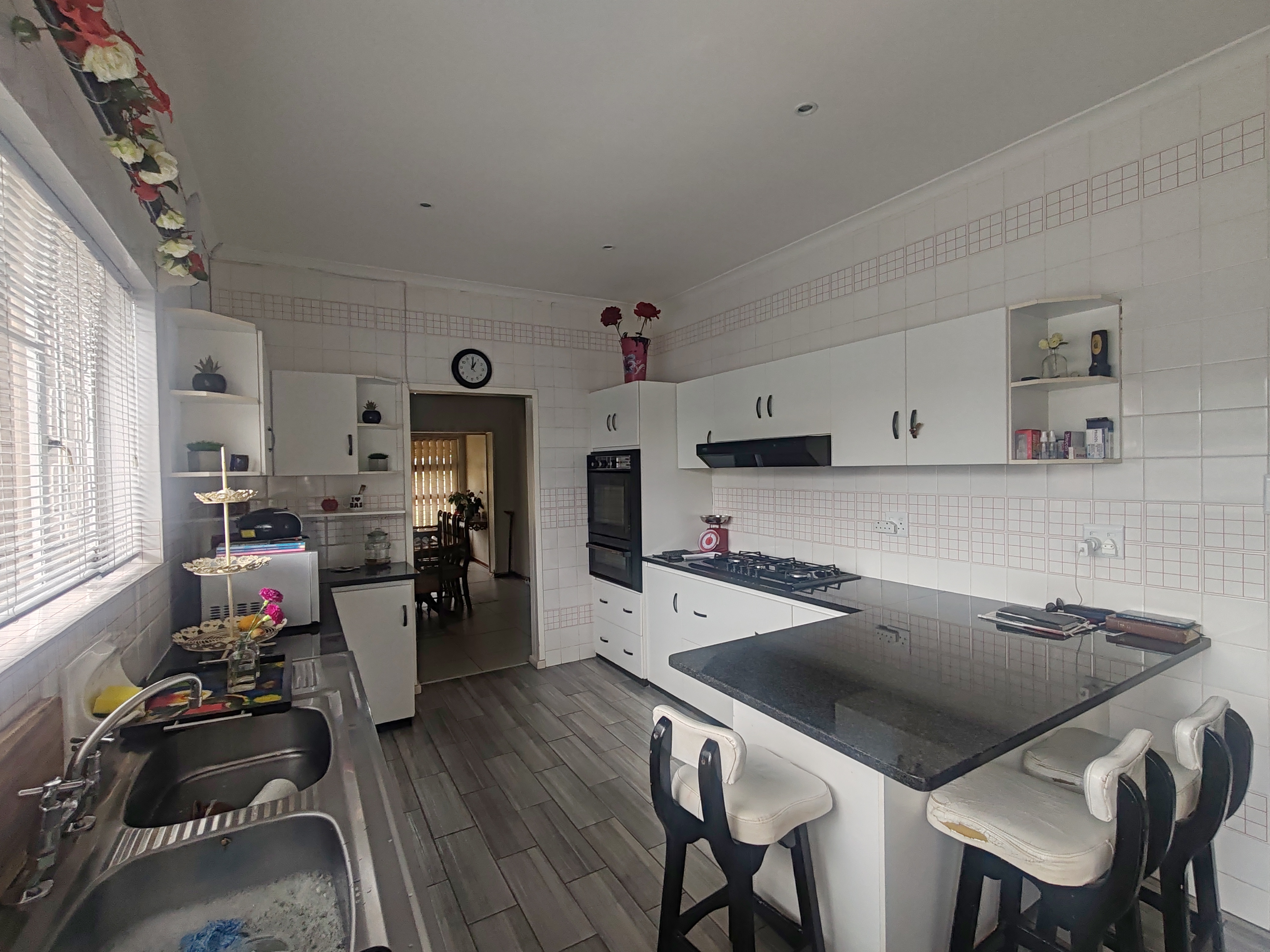 This well-maintained family home is situated on a spacious corner plot and is fully walled with a remote-controlled gate for added security.