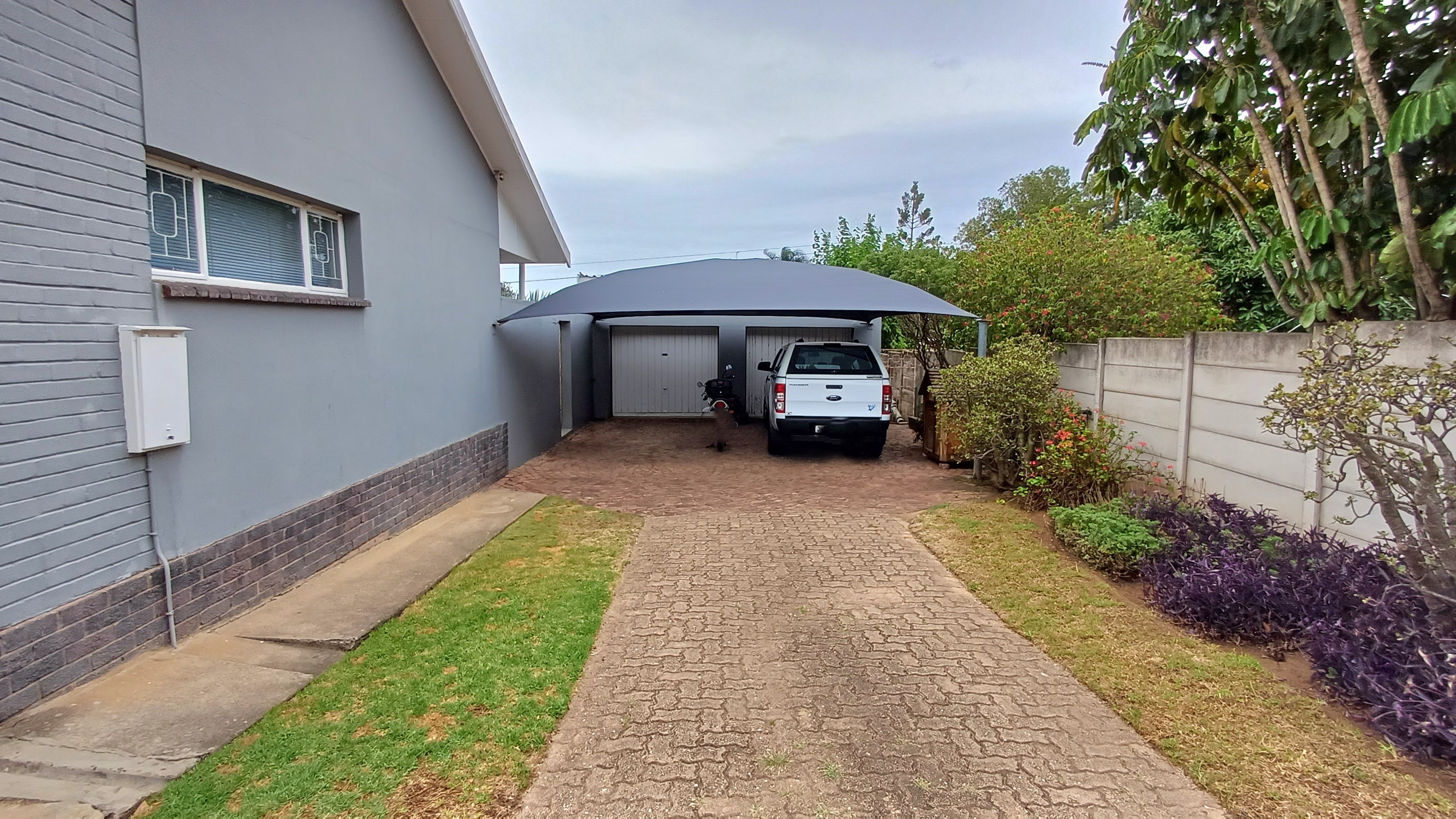 Double carport with additional parking space.