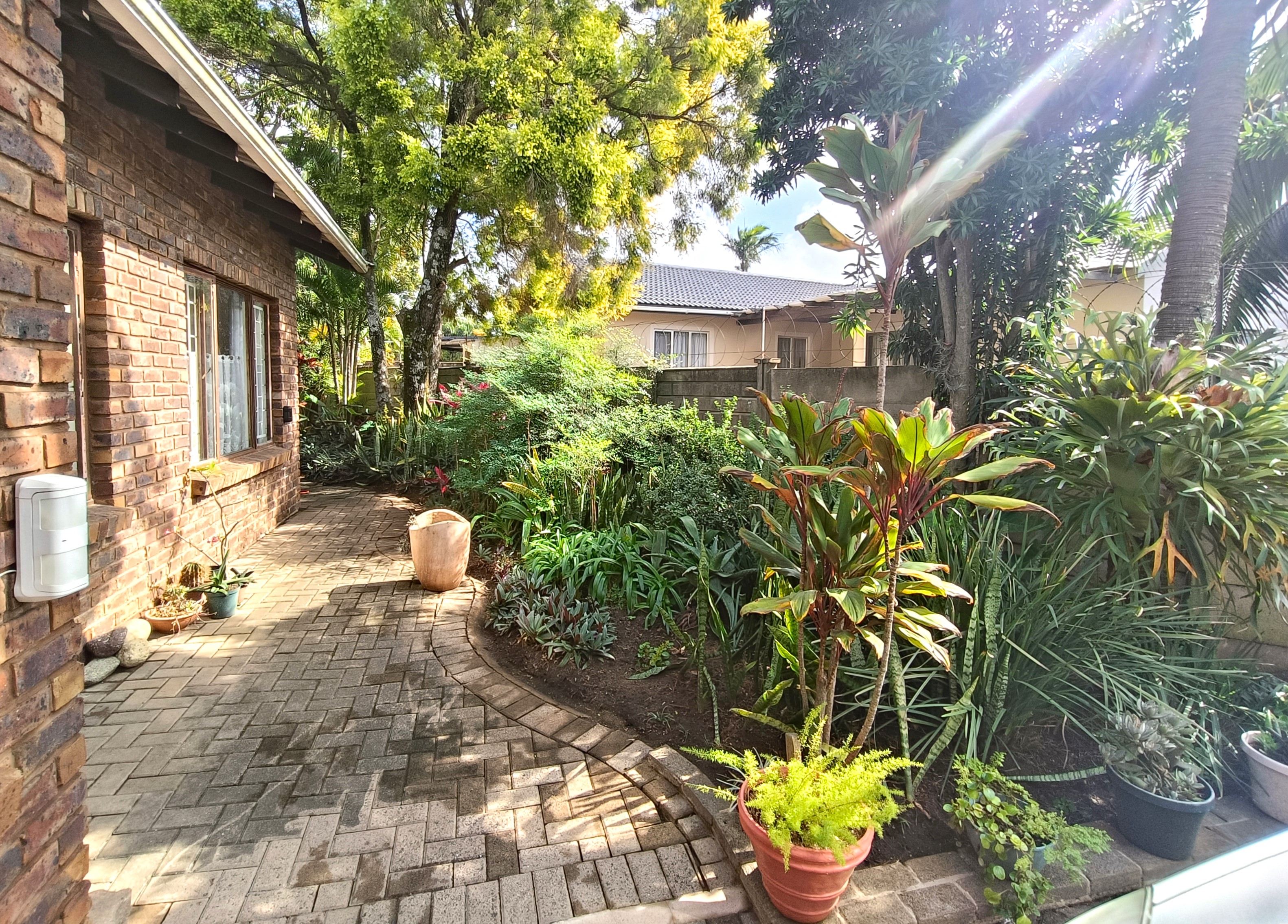 The outdoor area is where this property truly shines. Enjoy the serenity of a lush, tropical garden that keeps the home naturally cool and inviting. A sparkling pool and covered patio at the back create the perfect setting for entertaining or simply unwinding in your private oasis. The extended-length single garage (7.7m) offers extra space for storage or larger vehicles. With high boundary walls and an alarm system for peace of mind, this home is ideal for those seeking secure, relaxed living in a sought-after area.