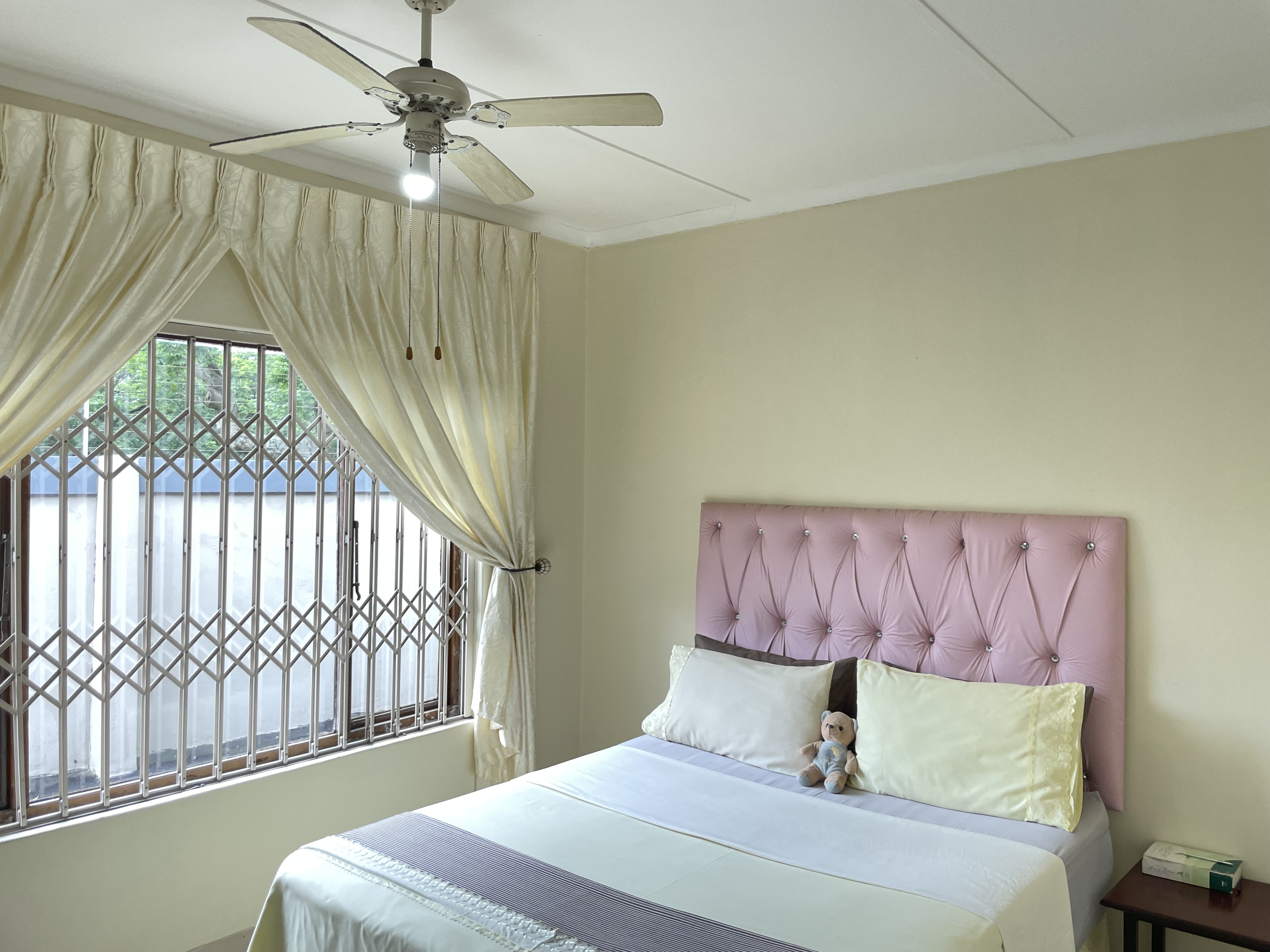 Walking into the property you are embraced by an open-plan lounge and dining area that flows seamlessly into the kitchen. The kitchen has standard cabinets, a double sink, and an under-counter oven. Four spacious bedrooms for family and guests, the master is the perfect size for a king and queen. The en-suite hosts a huge tube with an overhead shower.